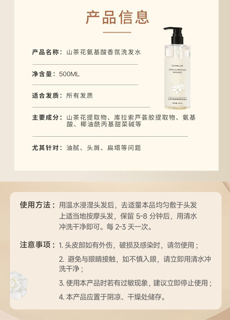 山茶花氨基酸香氛持久留香洗发水芳香净肤补水保湿沐浴露家庭装