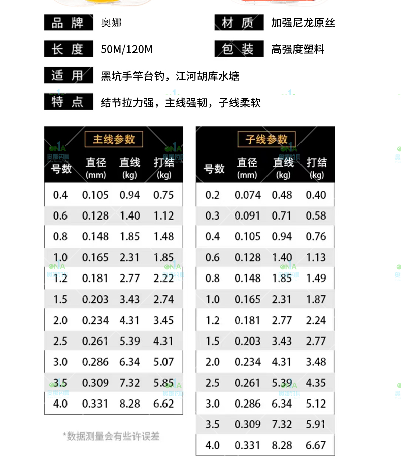 - ¥13.98150米同款主线(黄金线),1.2(建议钓重6-9斤,鲫鲤鳊罗非马口白条通用)