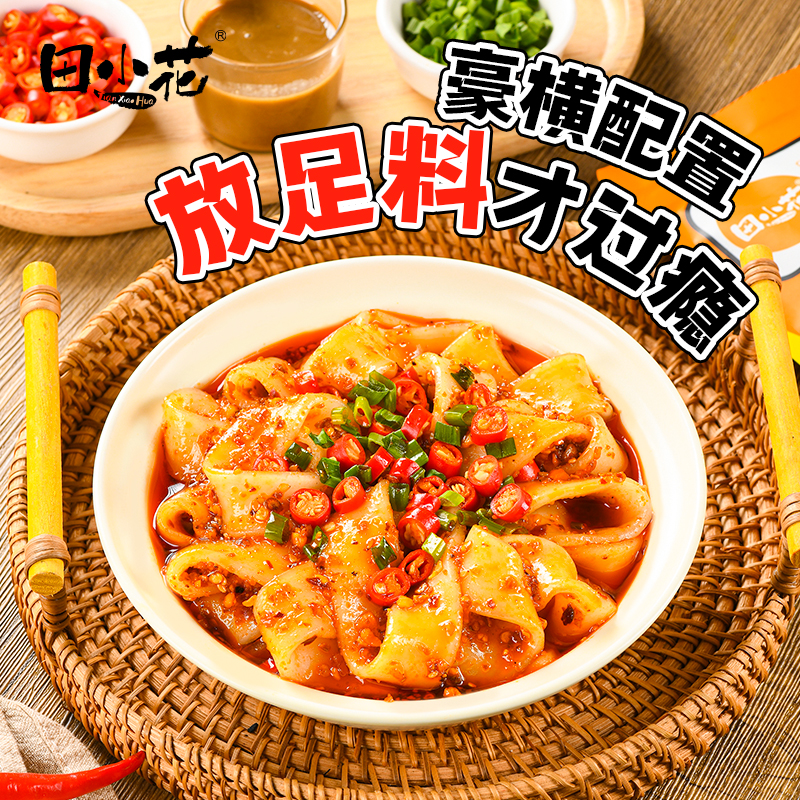 - ¥29.90*田小花袋装流汁大宽粉麻酱3袋+红油3袋
