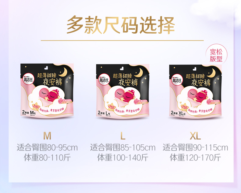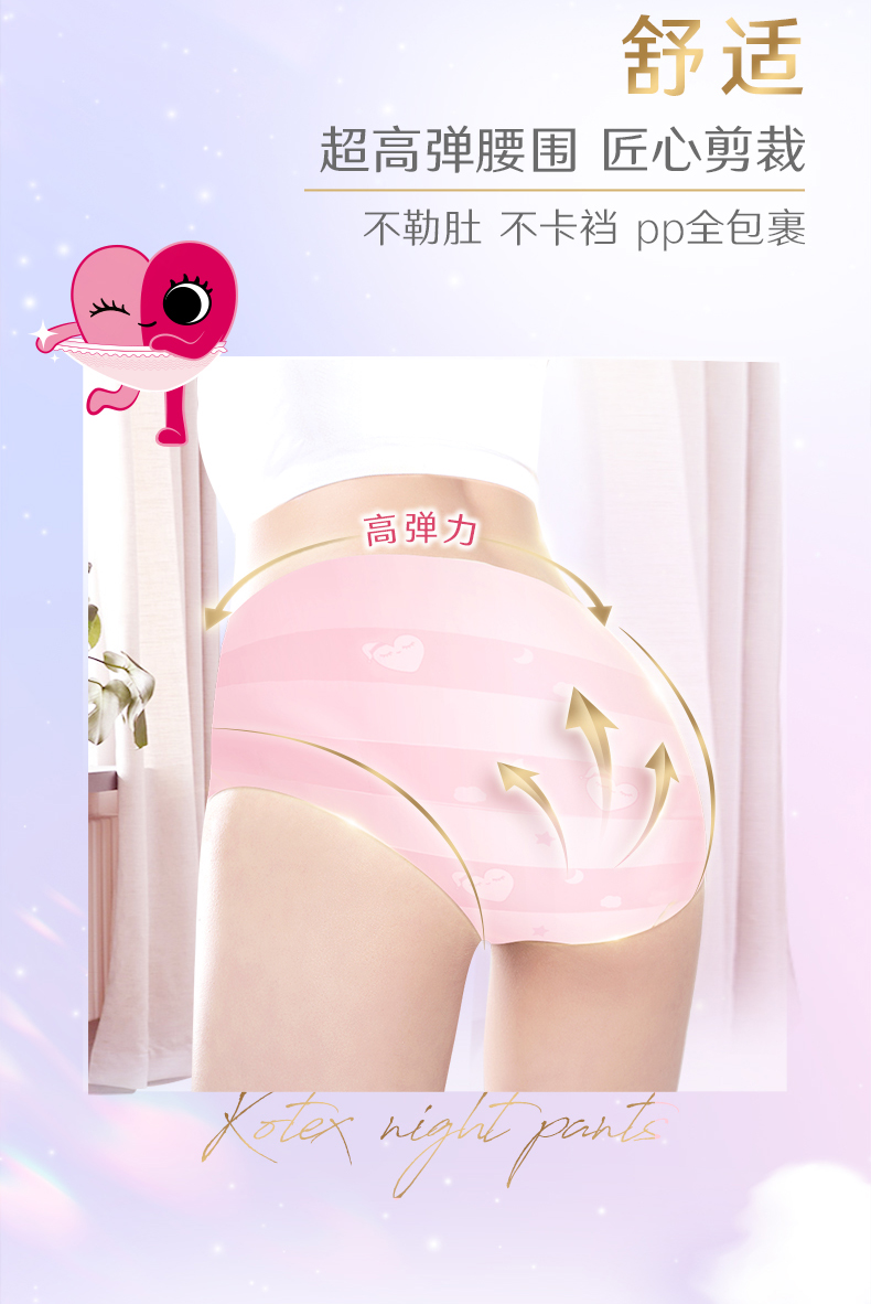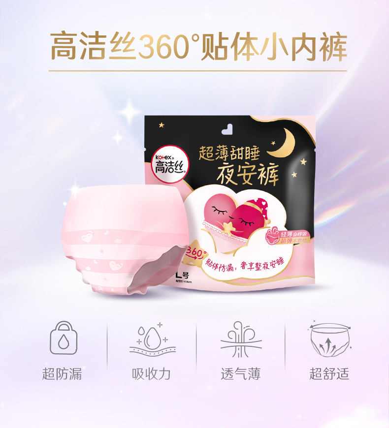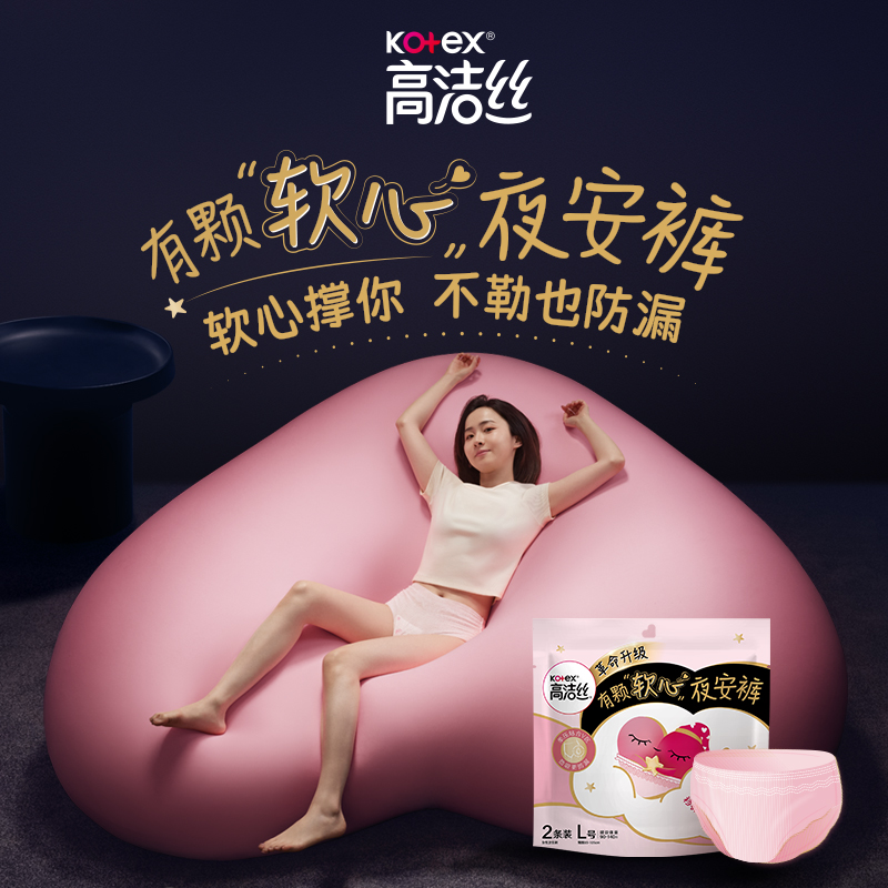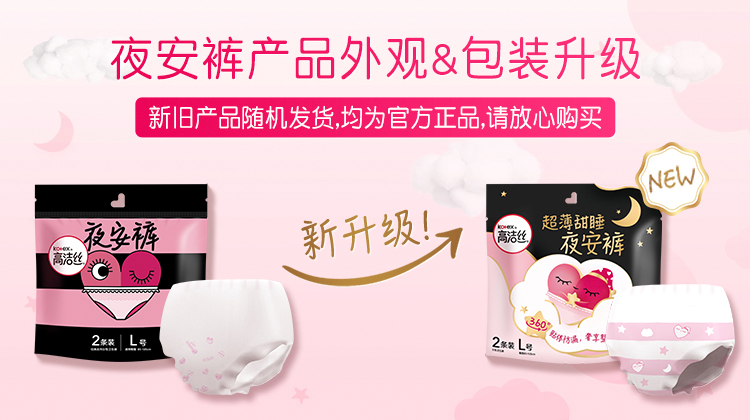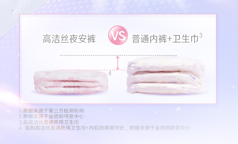 高洁丝有颗“软心”夜安裤安睡裤超薄防漏共4条+岛棉280mm2片*1包