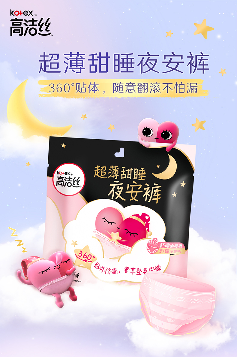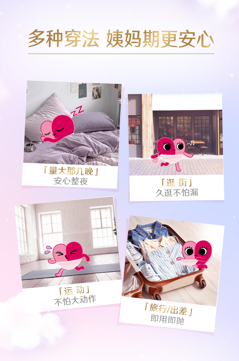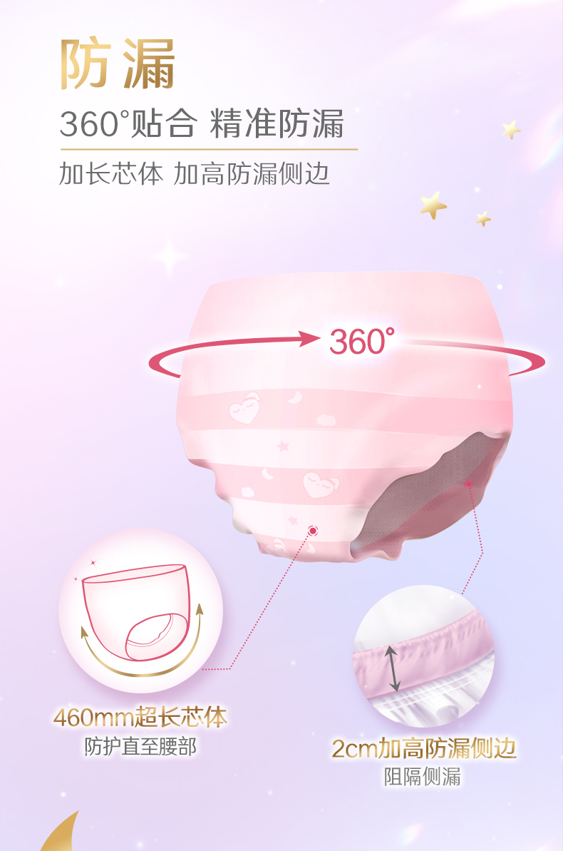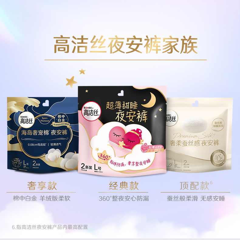 高洁丝有颗“软心”夜安裤安睡裤超薄防漏共4条+岛棉280mm2片*1包