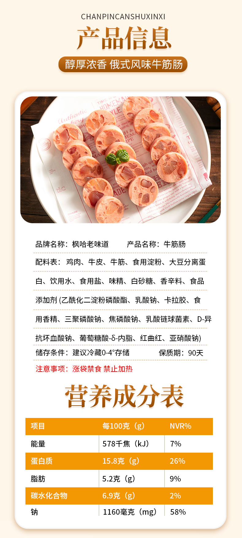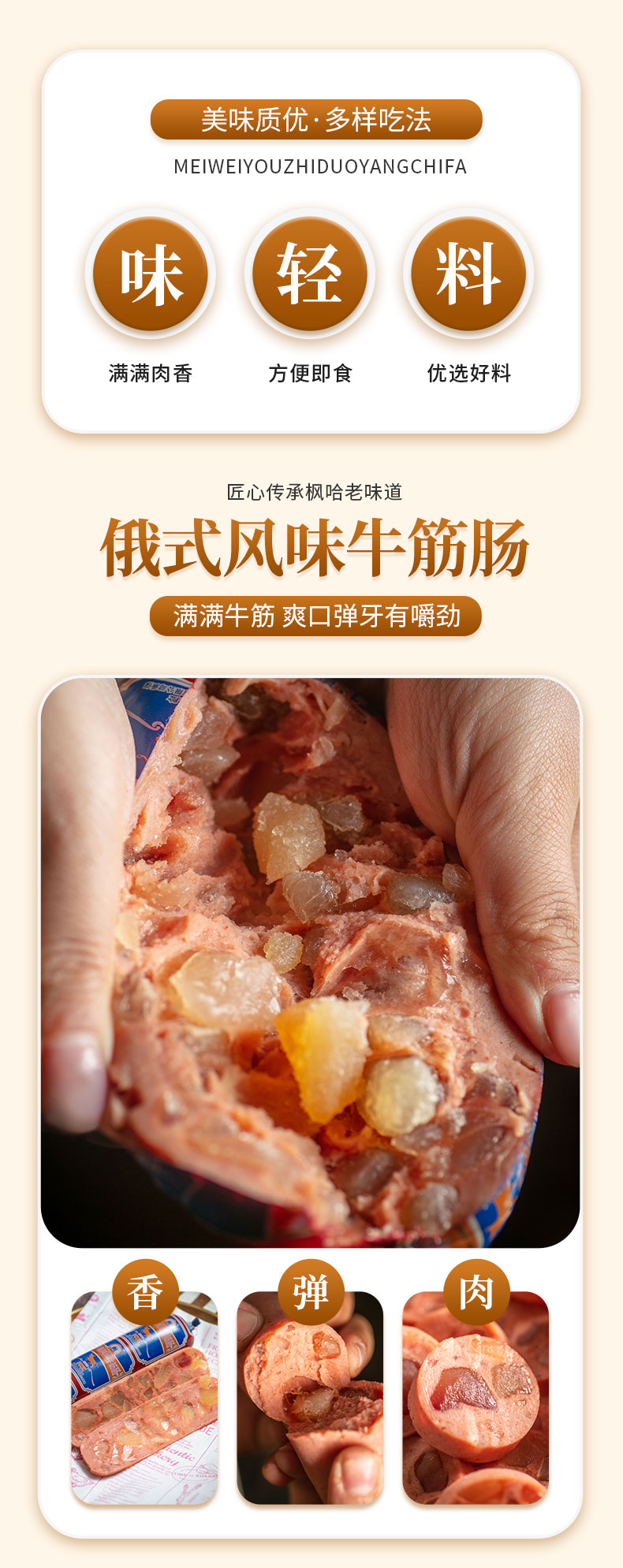 枫哈推荐 正宗俄式风味牛筋肠180g*5根 开袋即食 口感筋道
