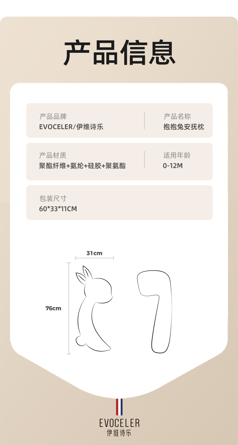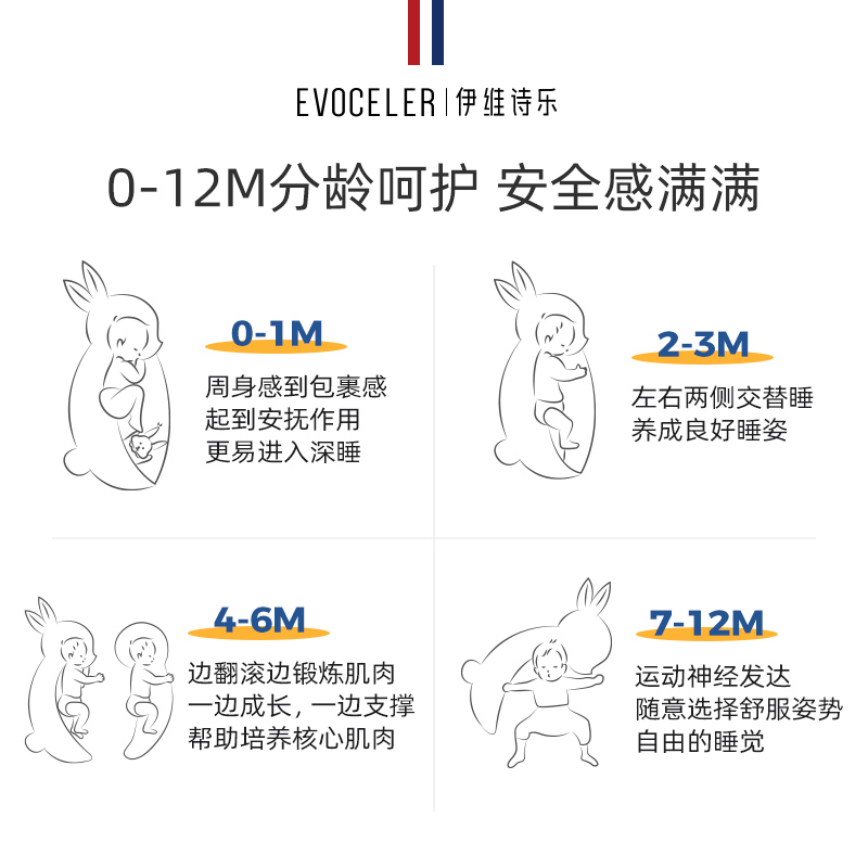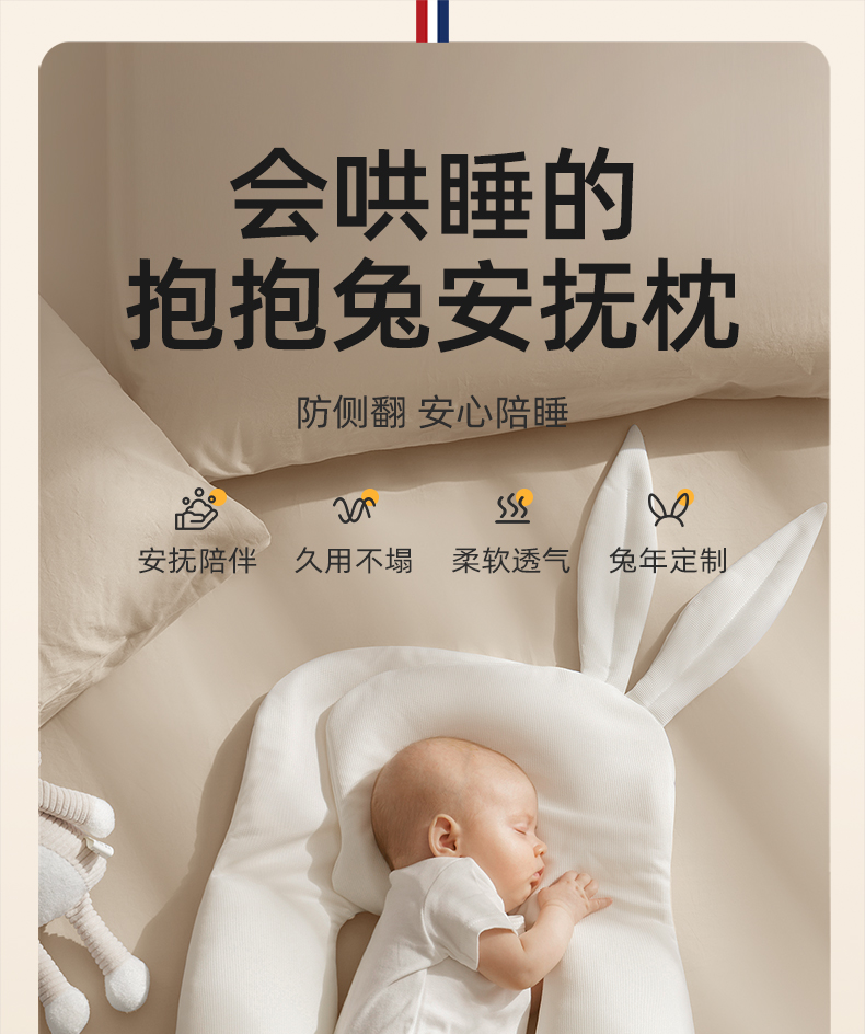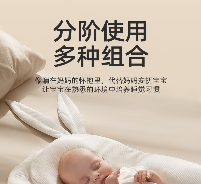 evoceler兔兔枕婴儿安抚床防惊跳哄睡枕新生儿防吐奶床中床斜坡枕