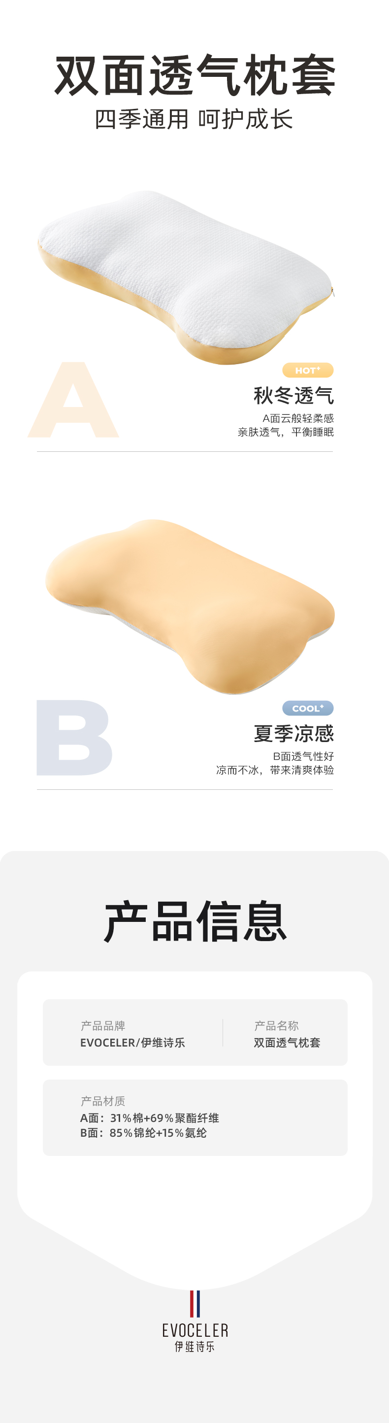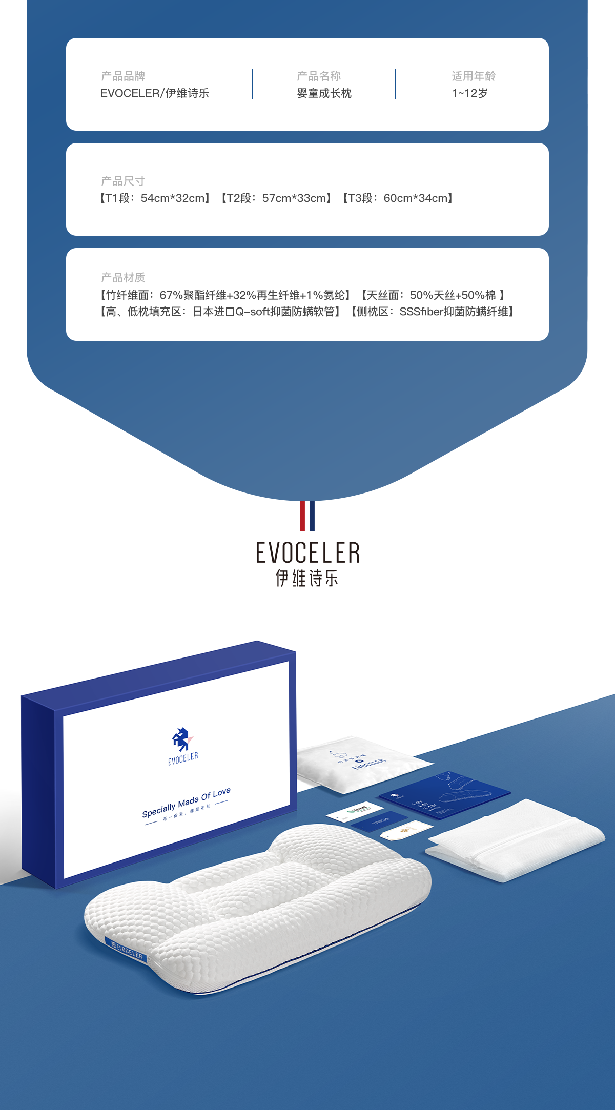 【EVOCELER】儿童成长枕头护颈枕配套枕套透气双面新生儿慢回弹