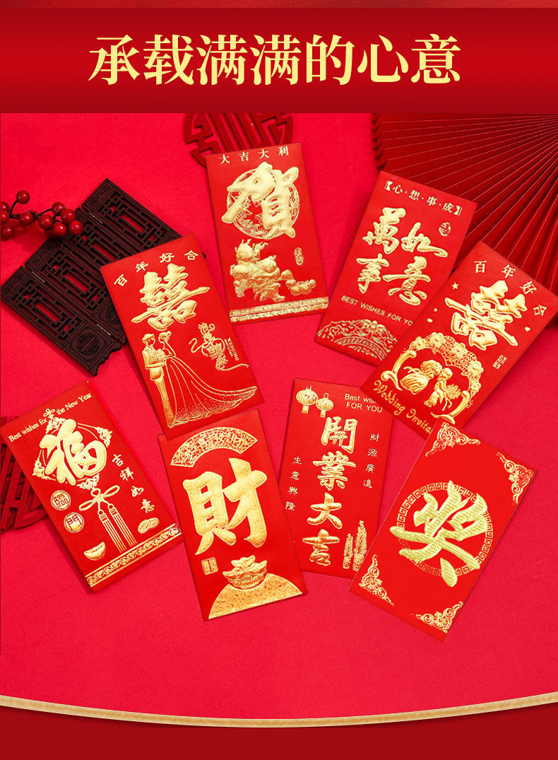 【8.9到手90个】2024新年通用红包结婚乔迁婚礼满月回礼过年红包袋