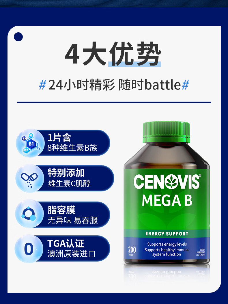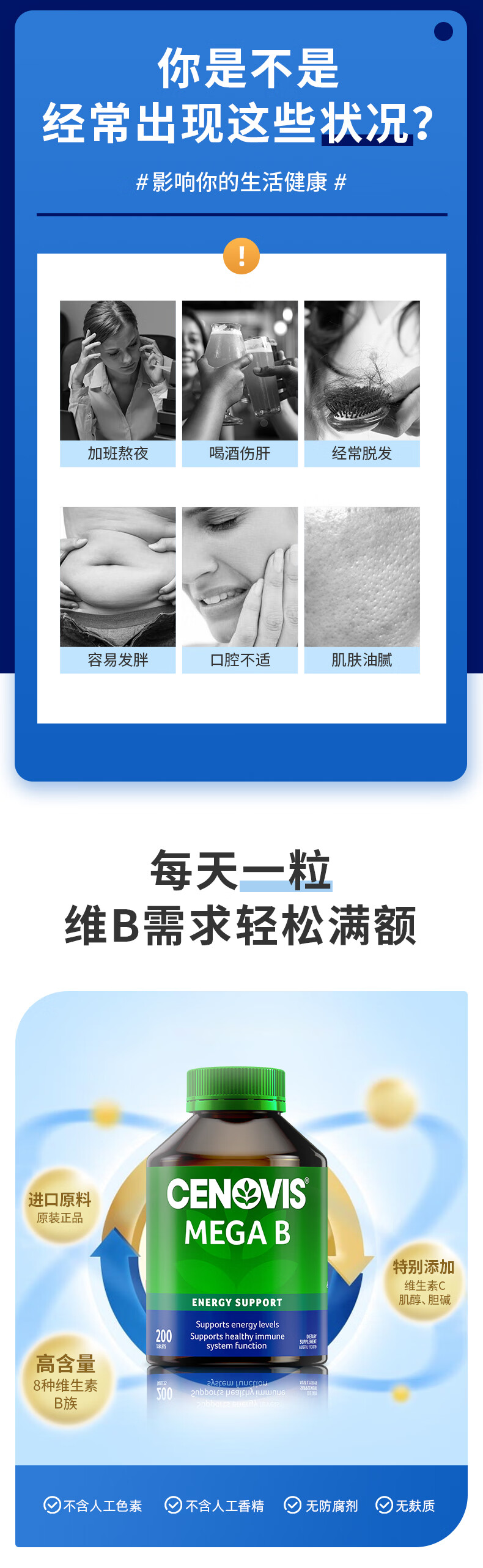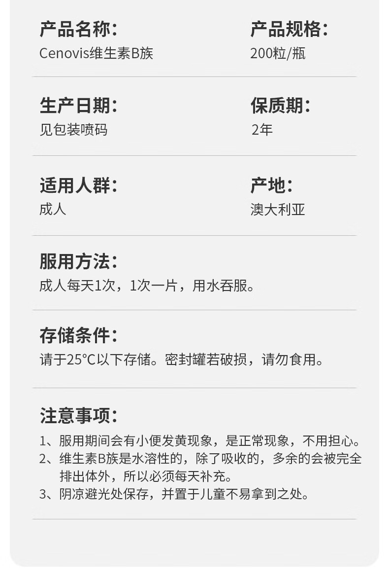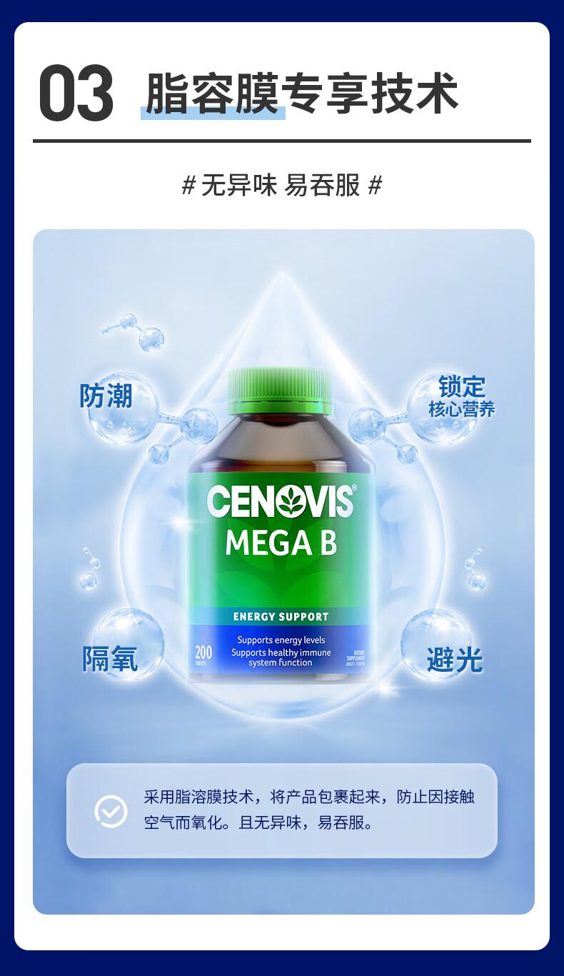 【达人专属】CENOVIS/萃益维复合B族营养片素肌醇200粒 200粒/瓶