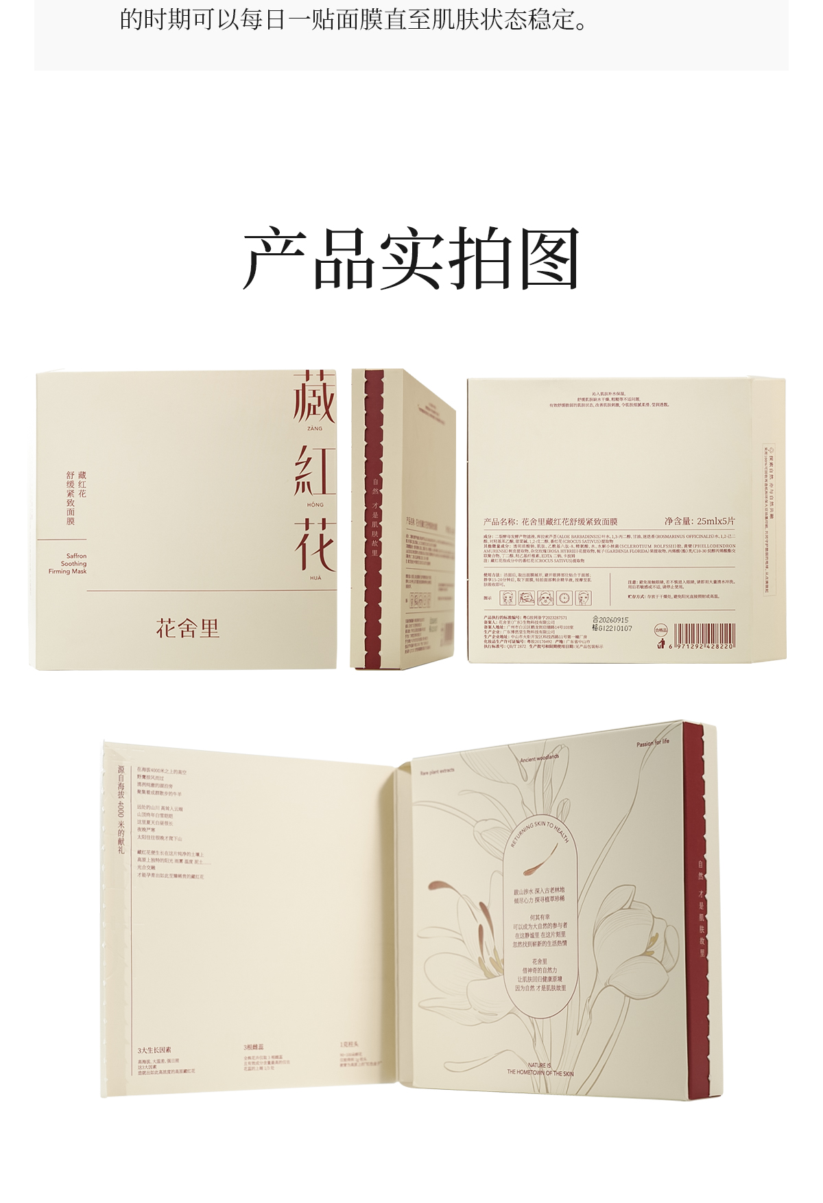 花舍里藏红花2.0舒缓紧致面膜滋养透亮补水保湿修护舒缓