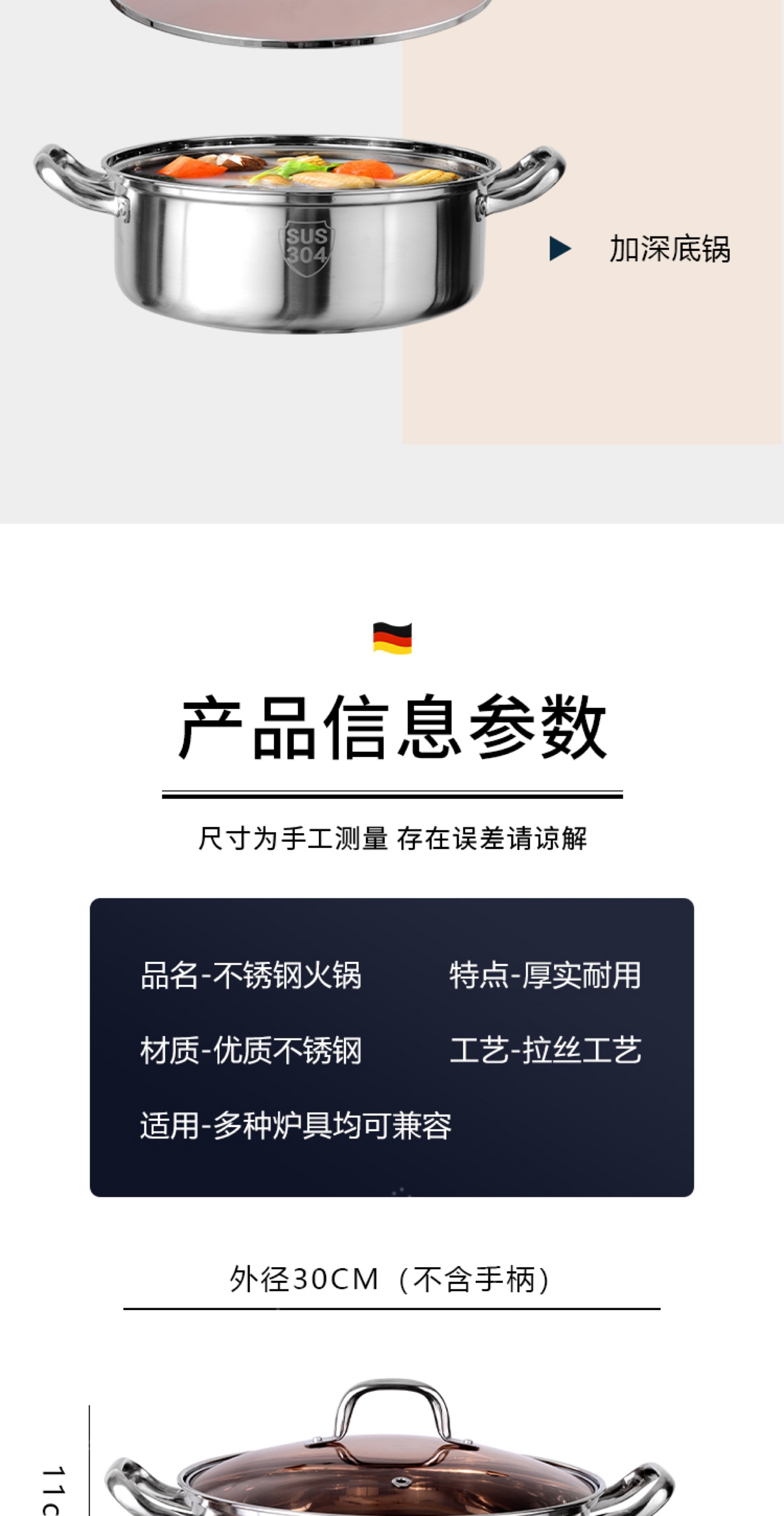 - ¥39.9030CM清汤火锅【带盖子 一体成型鱼鳞锤纹底】
