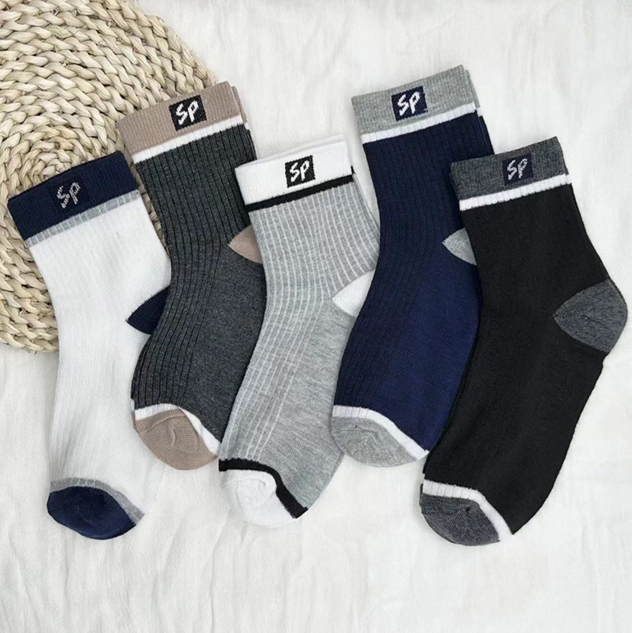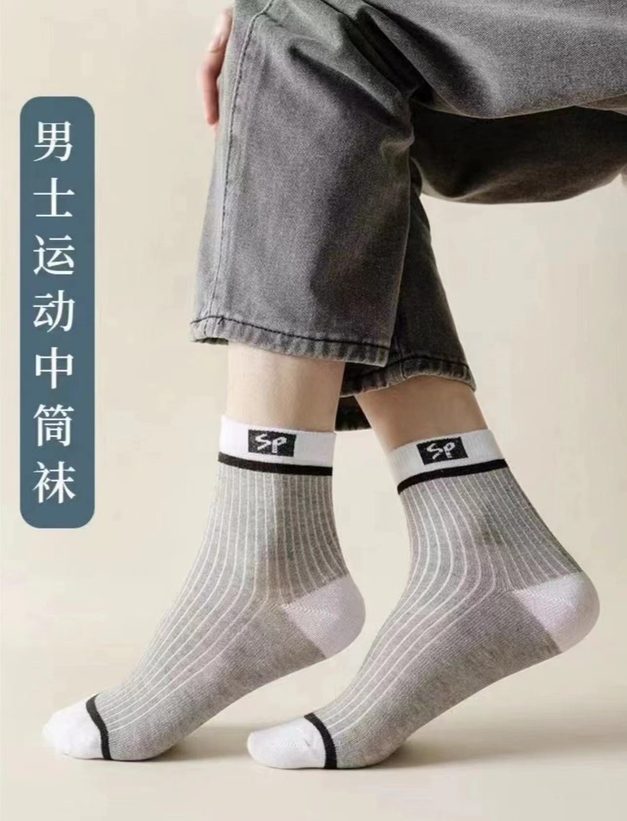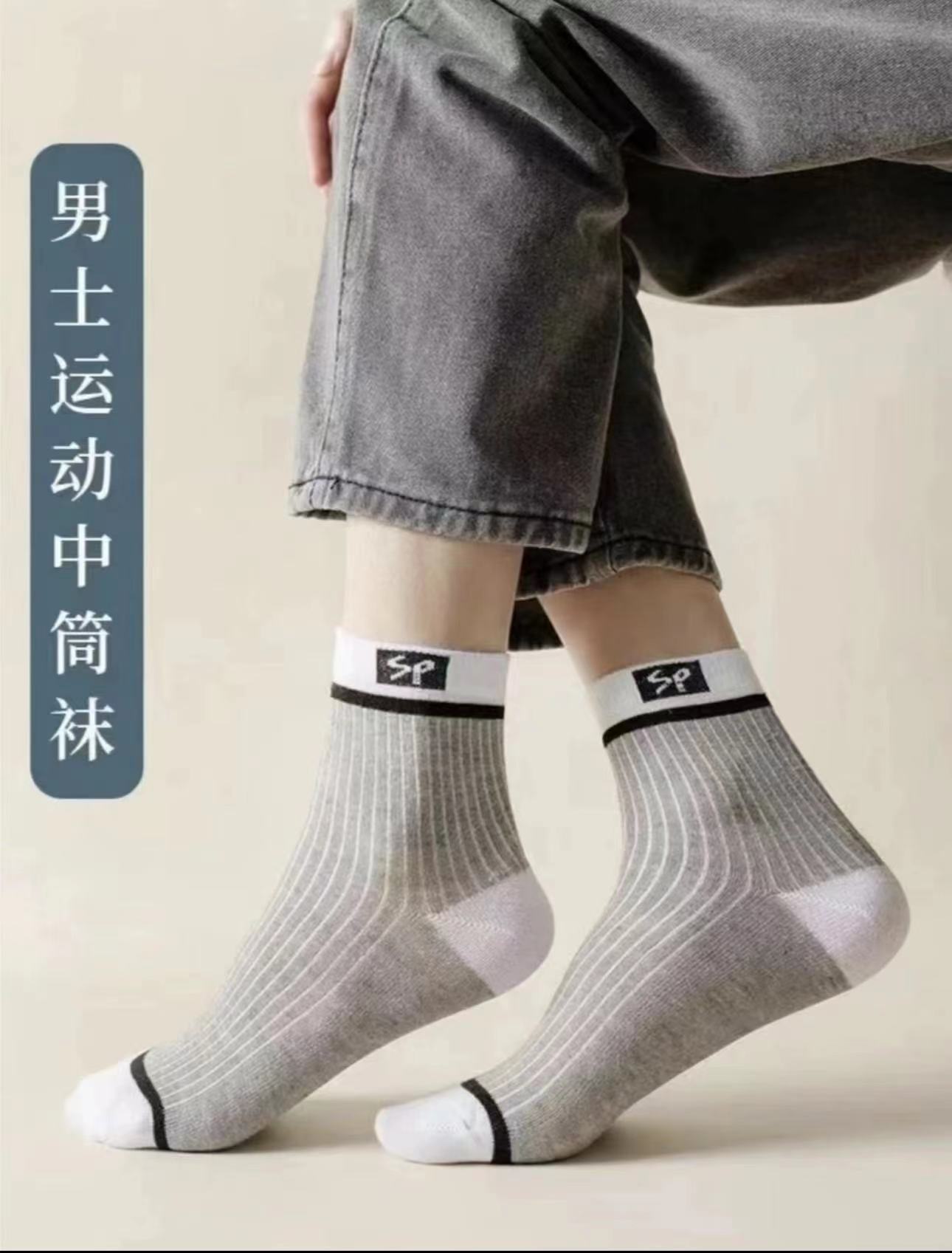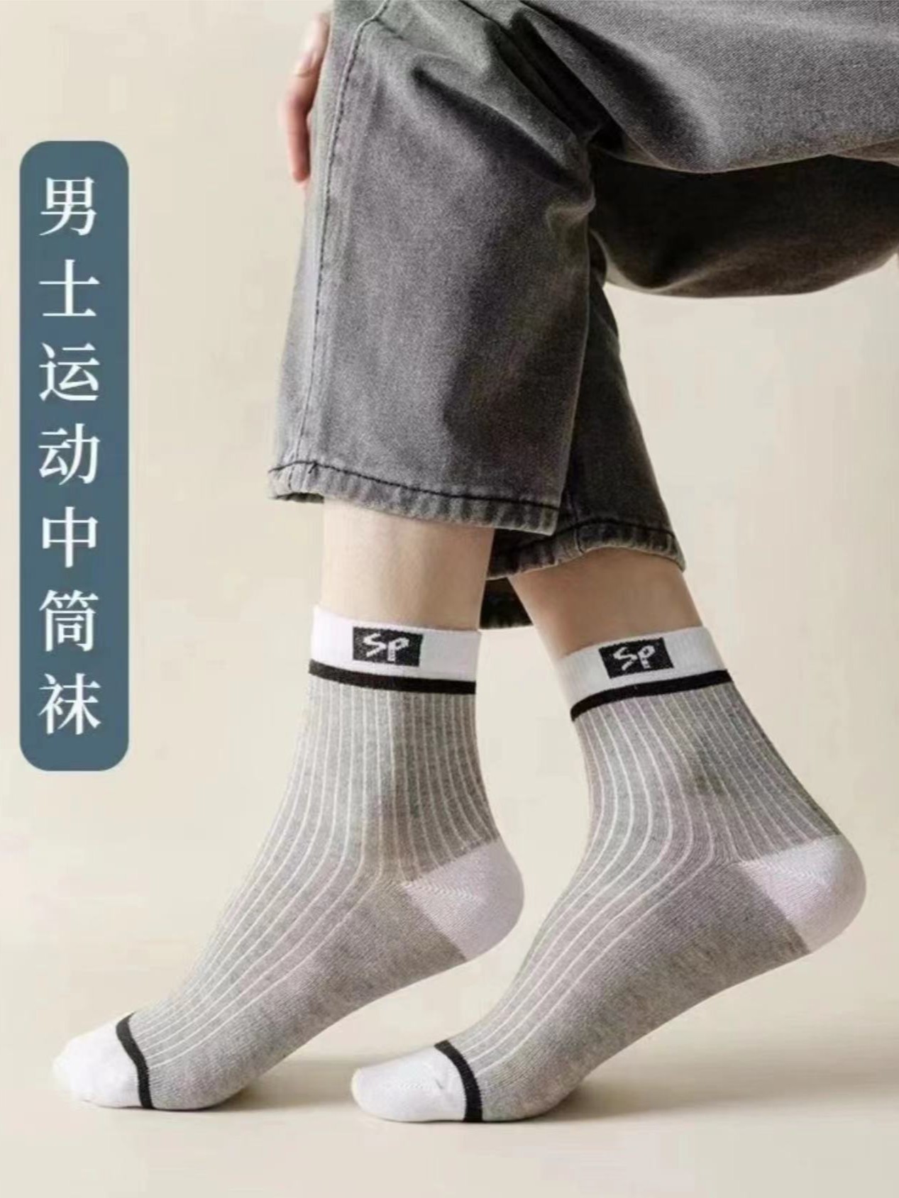 新款百搭男士运动中筒袜透气保暖运动风nis潮流休闲男袜5件起拍