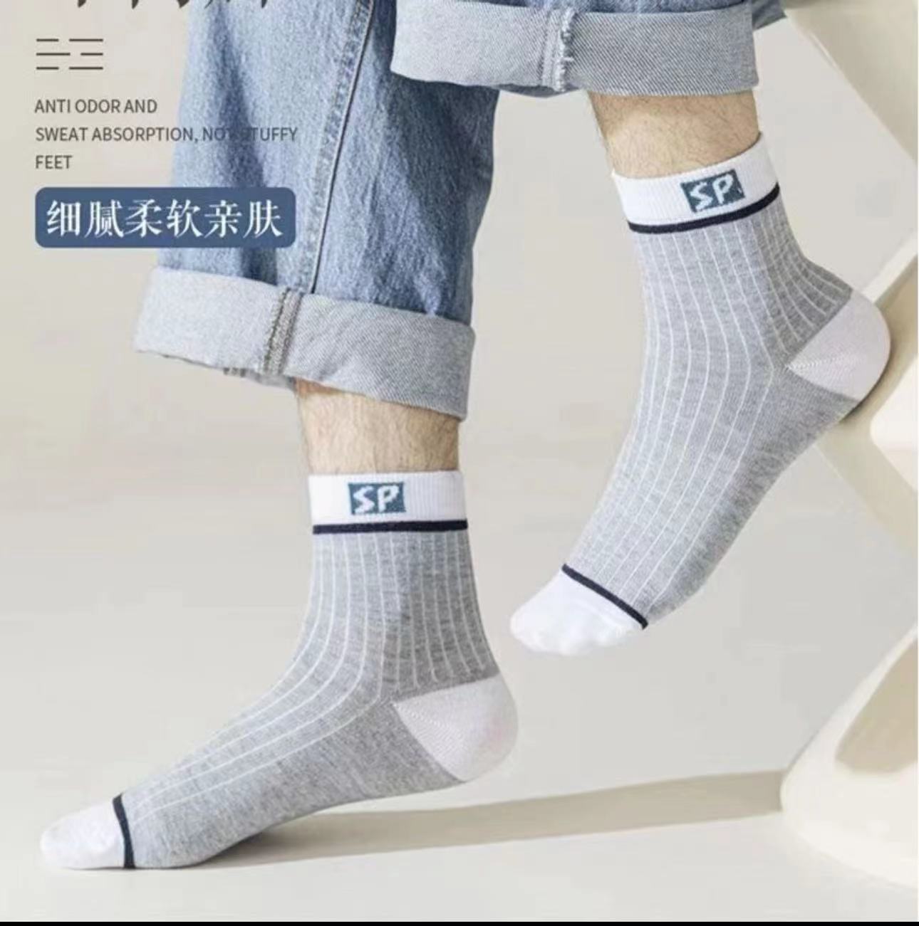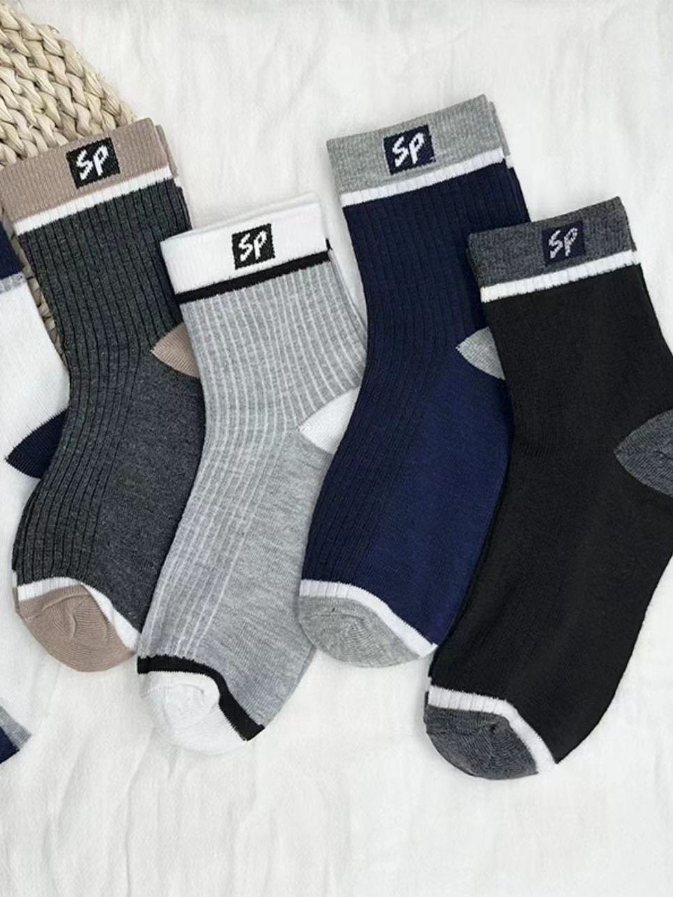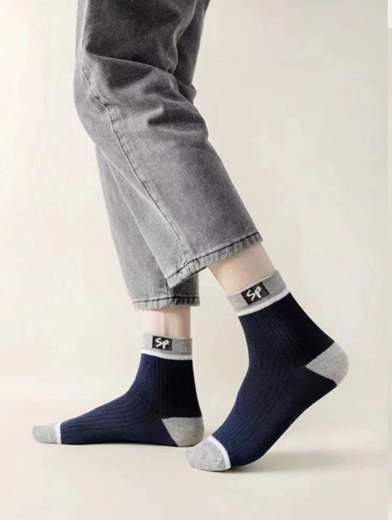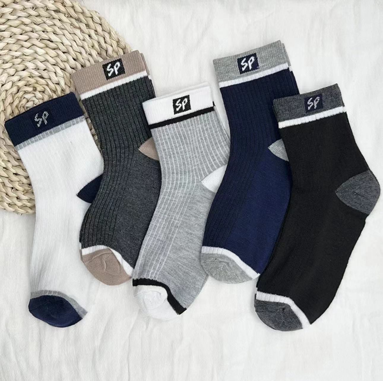 新款百搭男士运动中筒袜透气保暖运动风nis潮流休闲男袜5件起拍