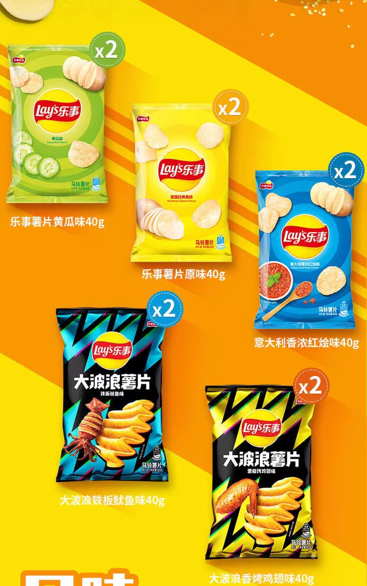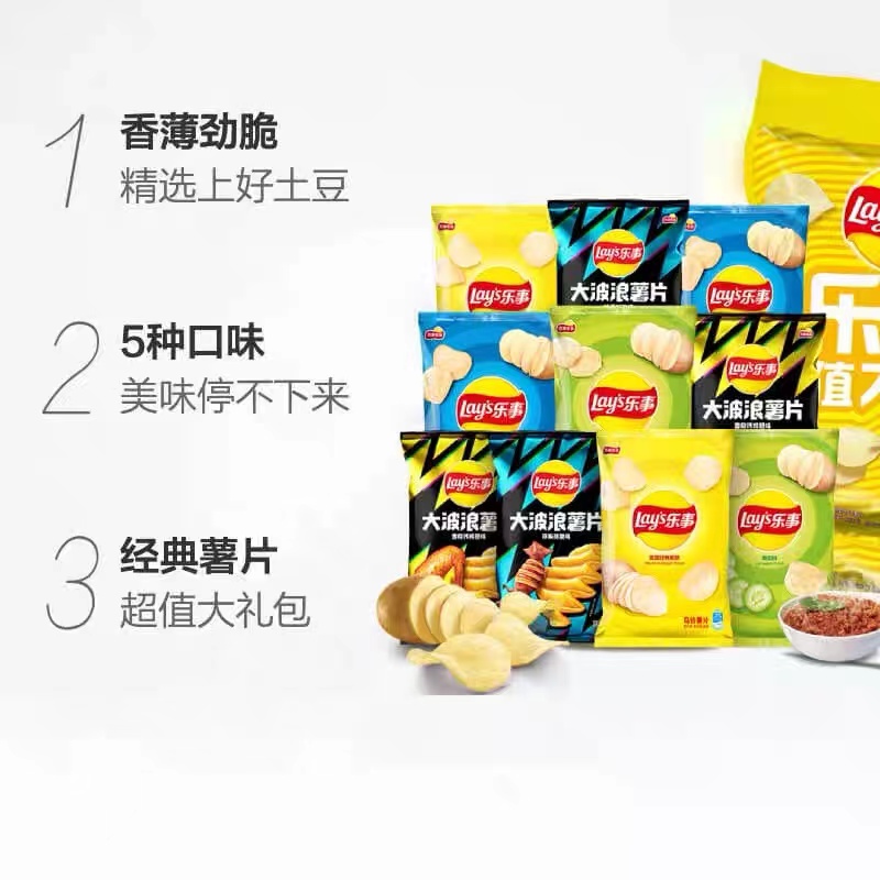 - ¥25.90乐事薯片大礼包400g*1袋(原切薯片40g*6包+大波浪薯片40g*4包)