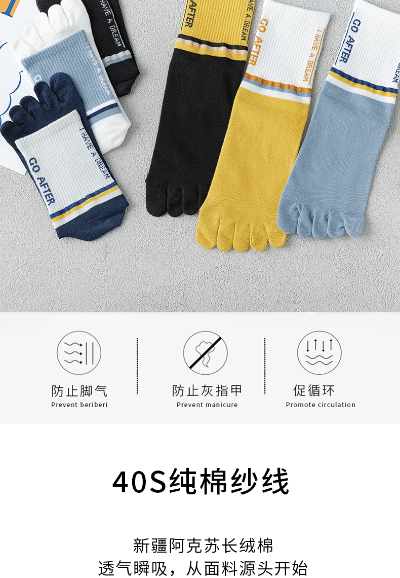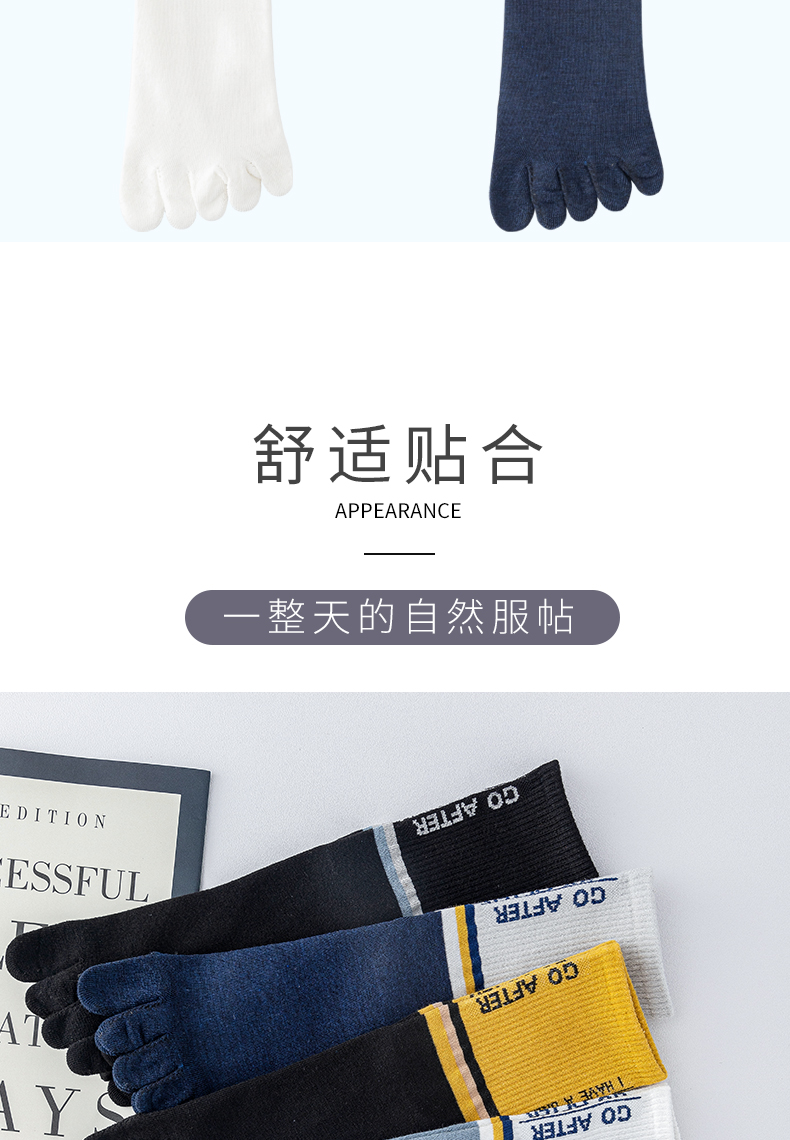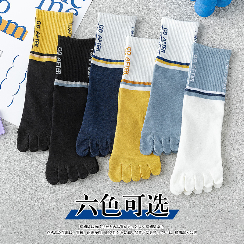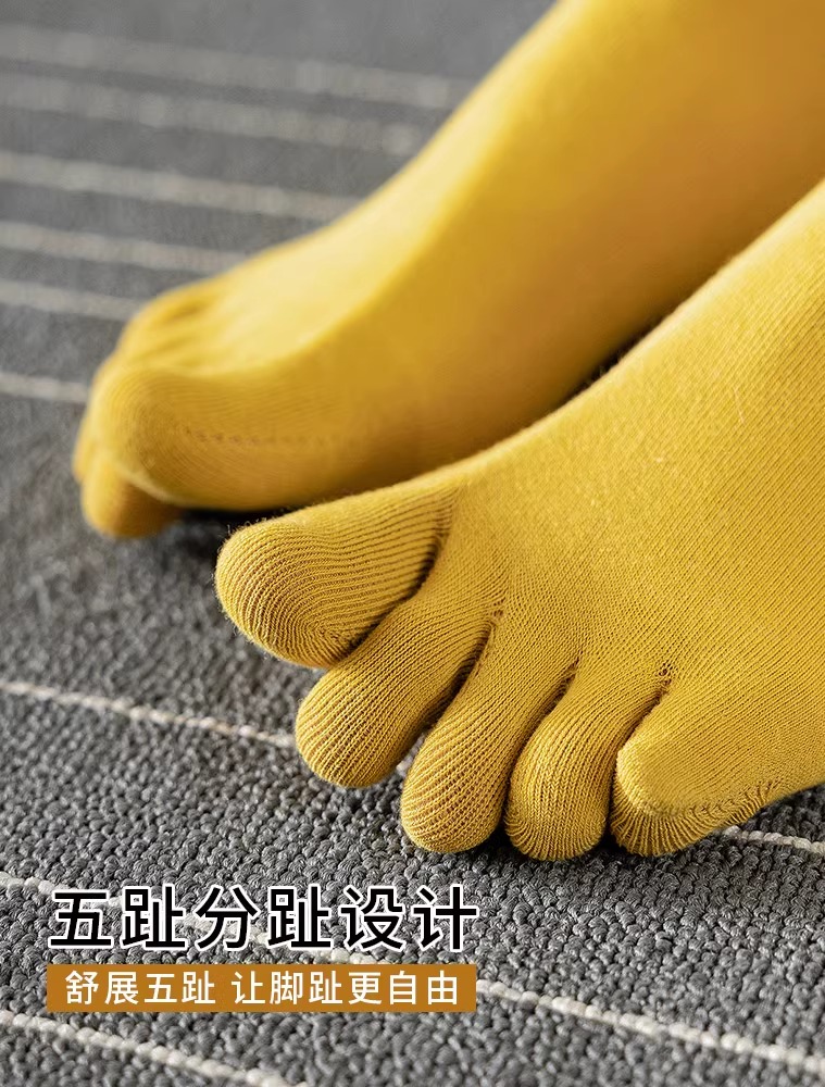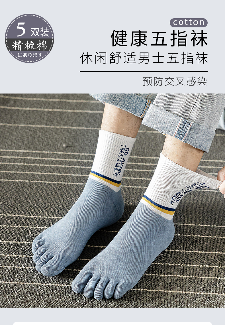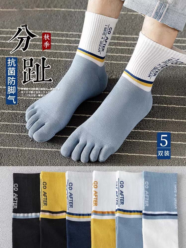 五指袜子男夏季透气分趾中筒袜夏天男生长袜夏天运动透气脚趾男袜。