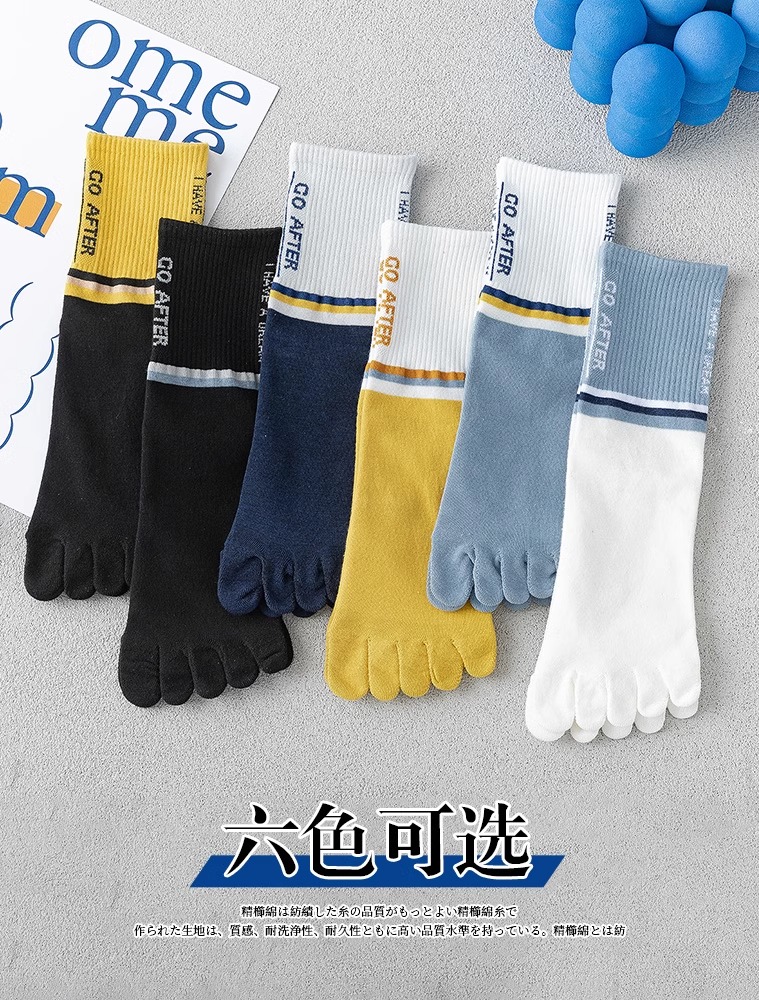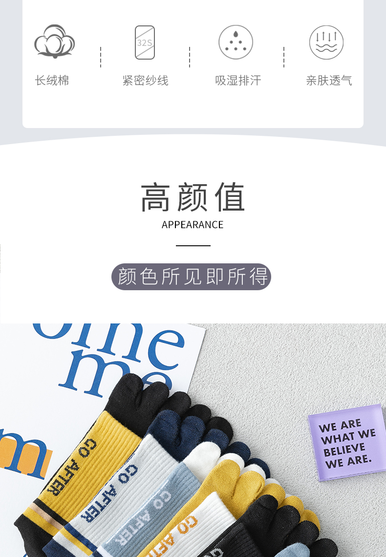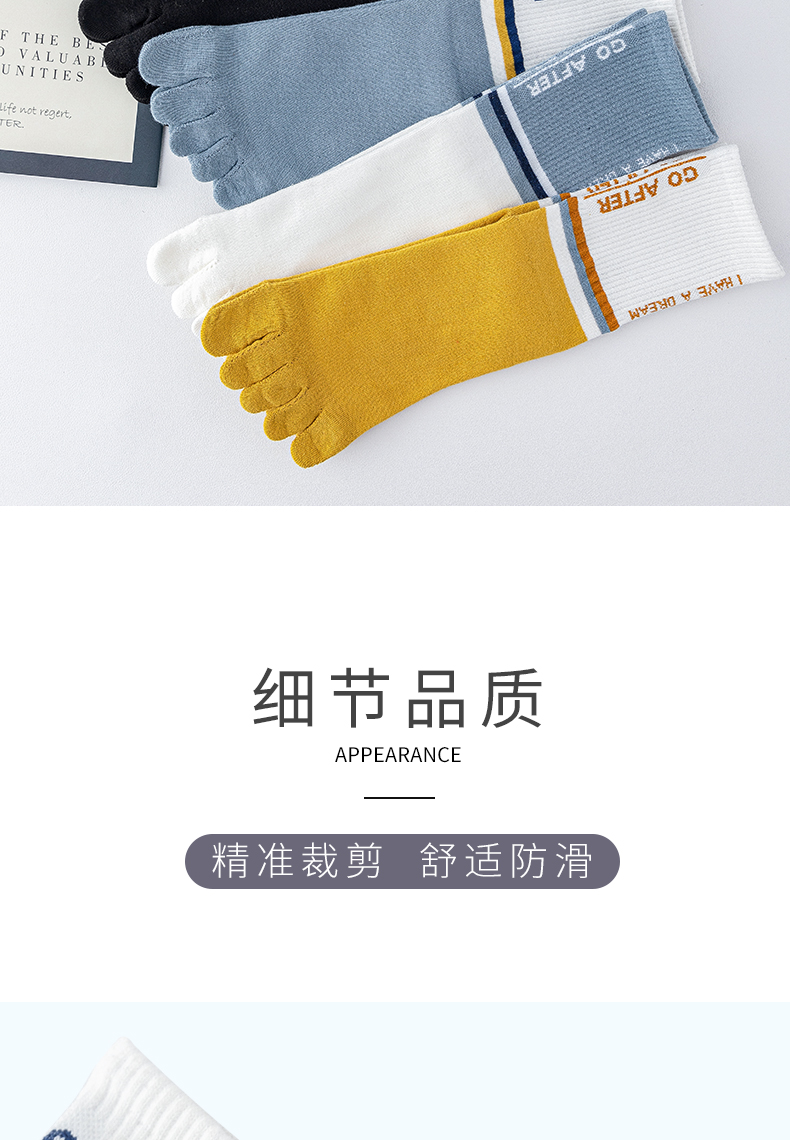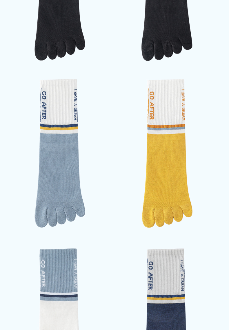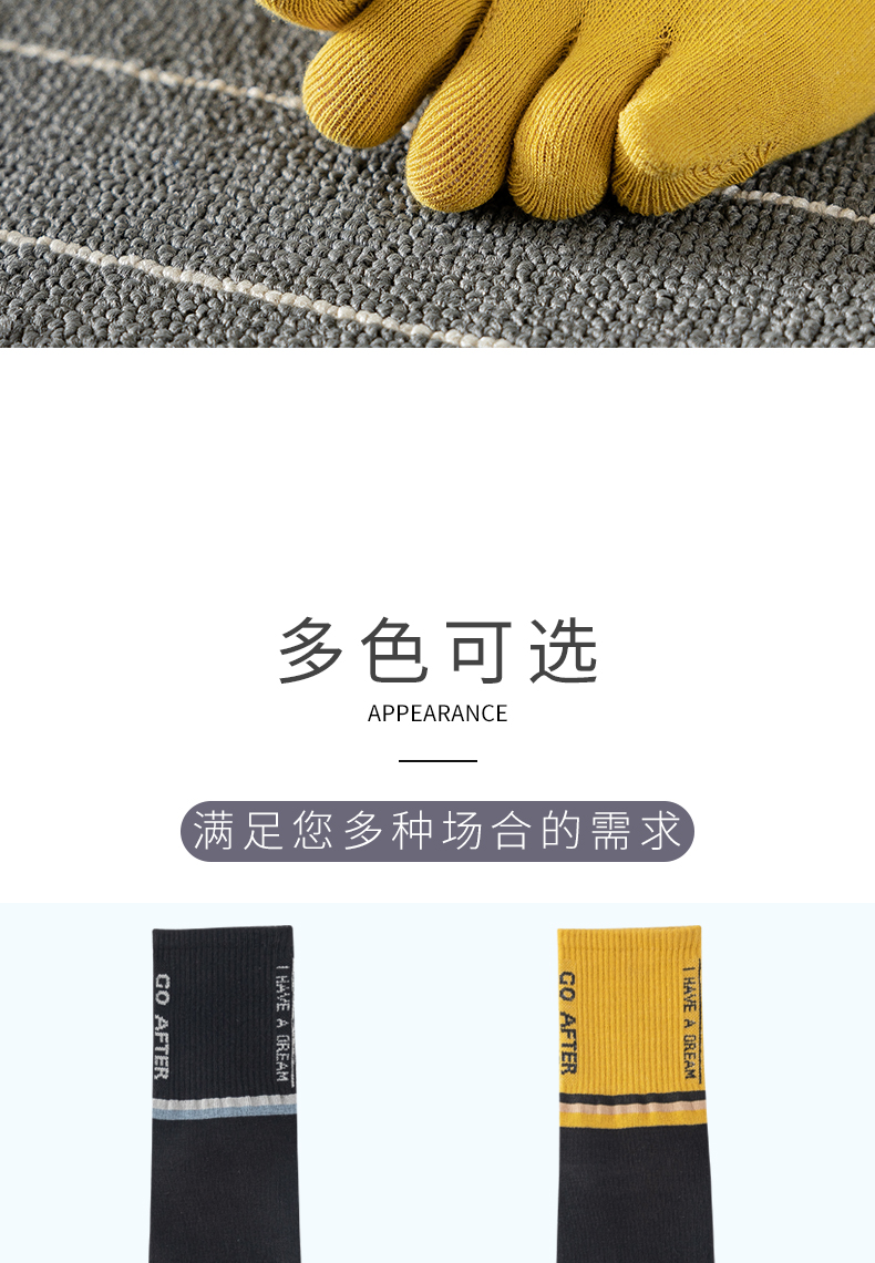 五指袜子男夏季透气分趾中筒袜夏天男生长袜夏天运动透气脚趾男袜。