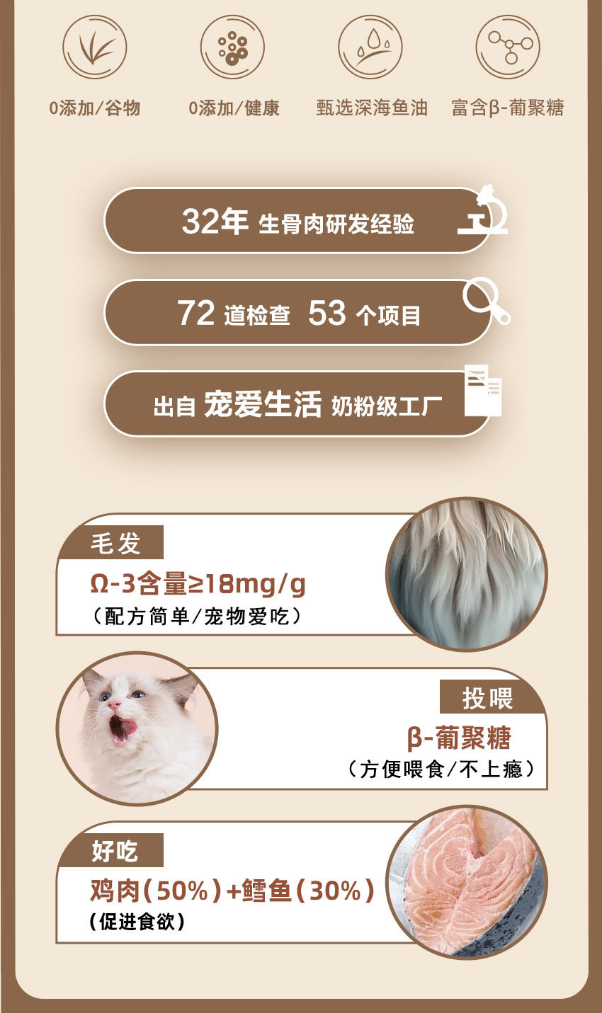 【团长专属】猫咪冻干零食鱼油棒防掉毛美毛生骨肉冻干营养高配料净