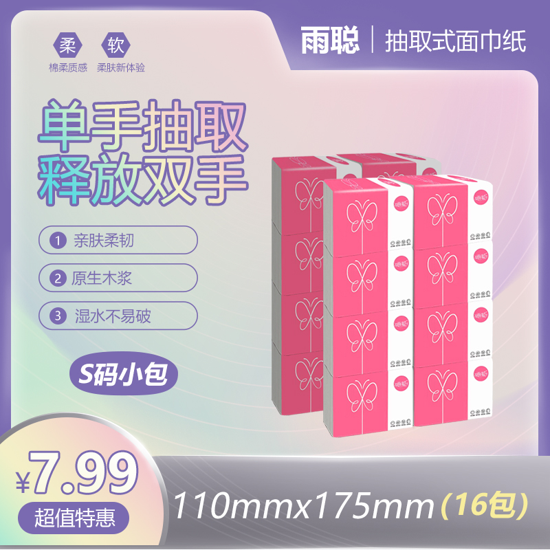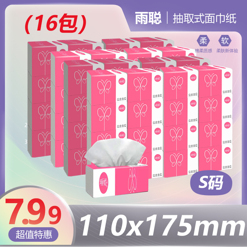 7.99【S码小包抽纸】16包 抽取式面巾纸 宿舍家庭装清新透气柔软