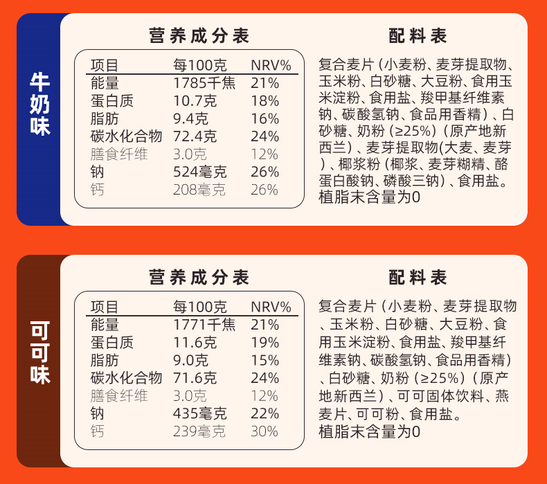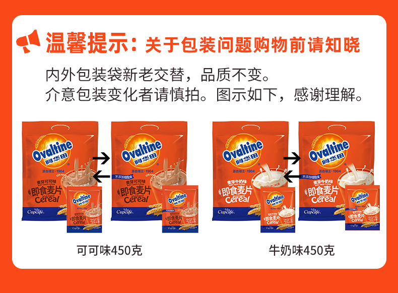 - ¥49.60可可味450g+牛奶味450g(共30小包)