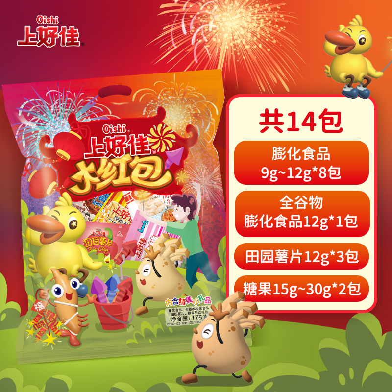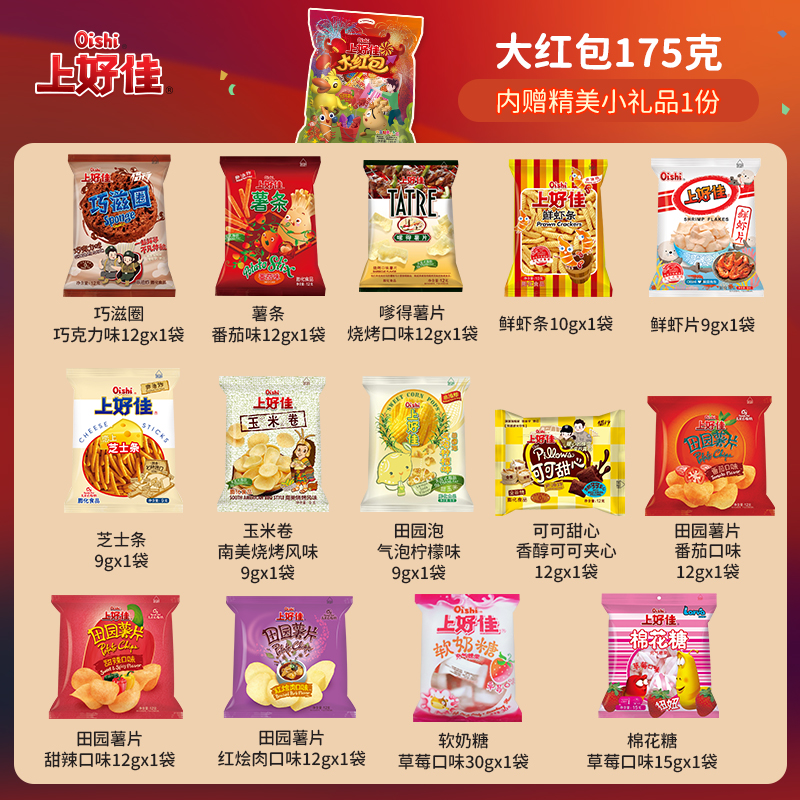 上好佳大红包14包共175g 礼包内含小礼品 蛇年膨化田园薯片糖果YY