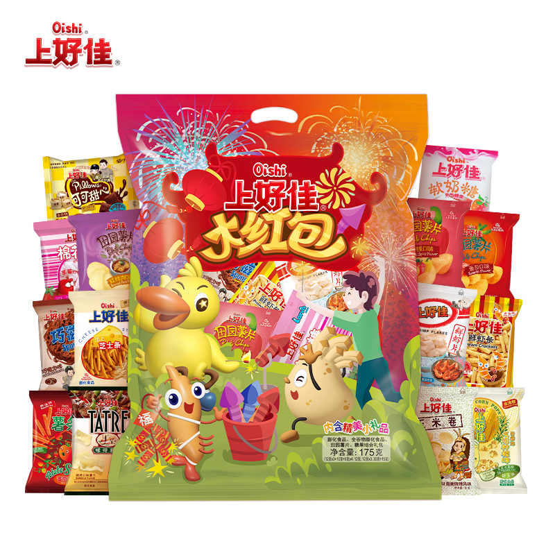 这款大红包真是太棒了!我非常喜欢它的大容量和美味口感。而且,里面的小礼品也很实用,让我感到非常惊喜。包含的膨化田园薯片糖果,口感非常好