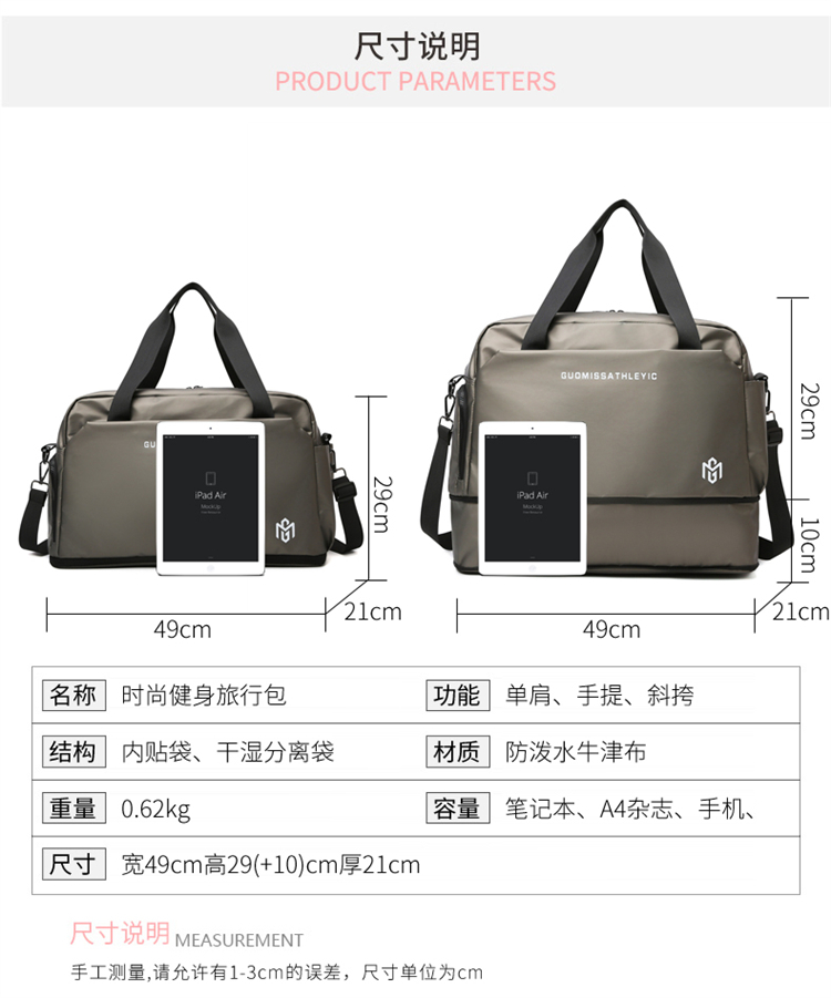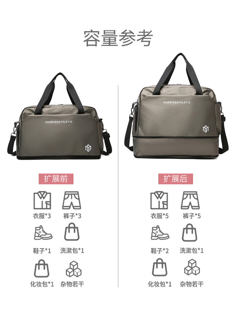 - ¥74.90【可扩展10cm】绿色(侧口袋+干湿分离仓+鞋仓)