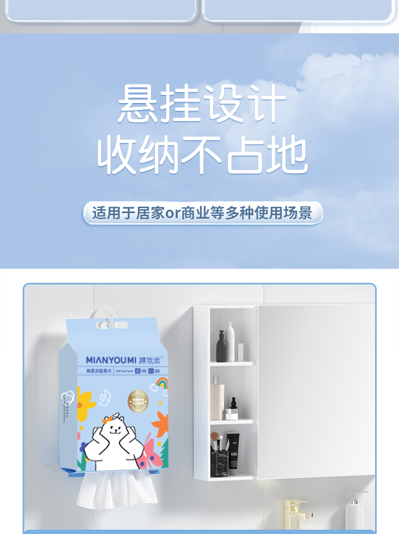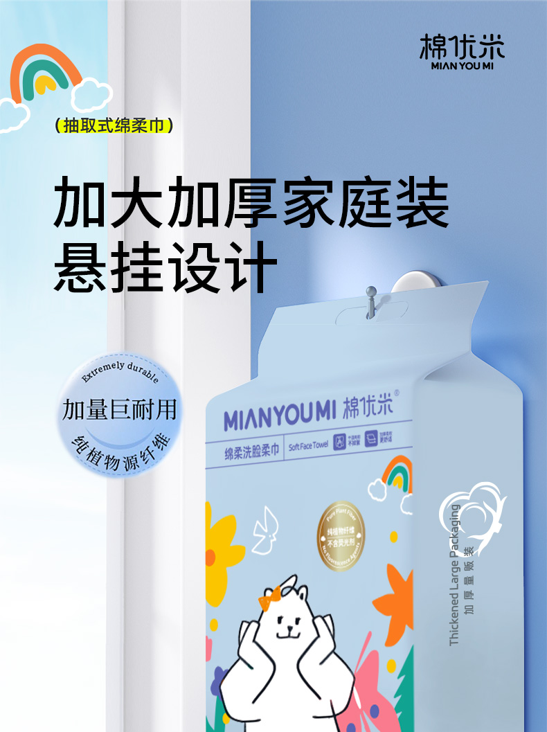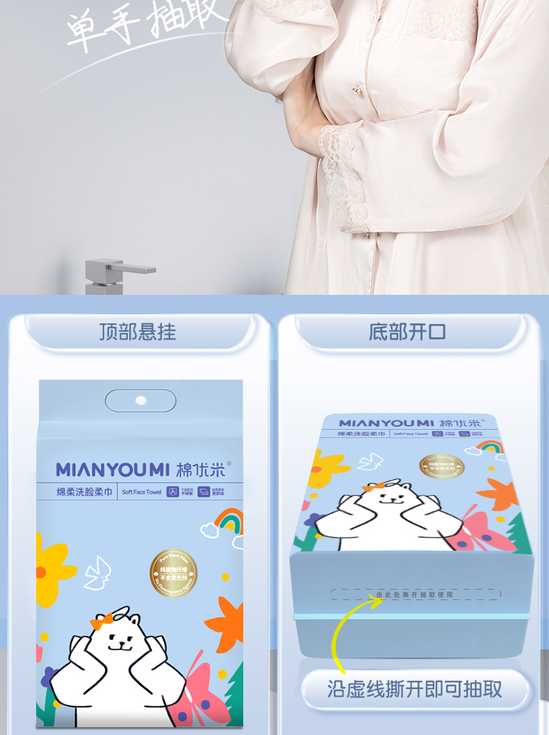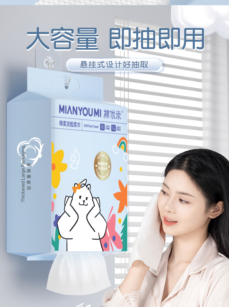 悬挂式纯植物纤维洗脸巾一次性抽取式加大加厚家庭装洁面柔巾亲肤