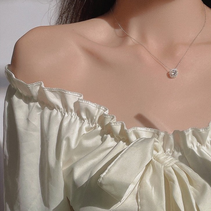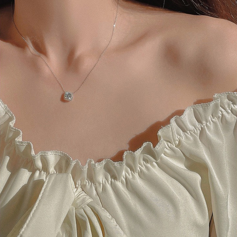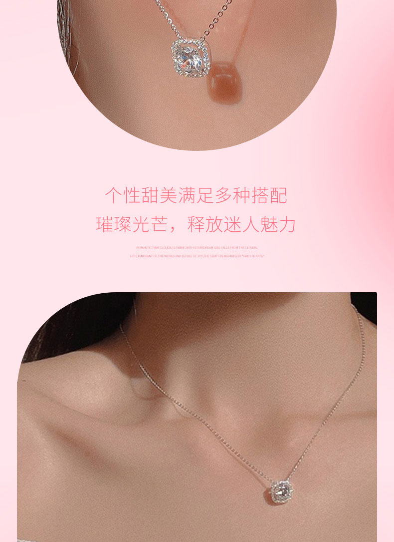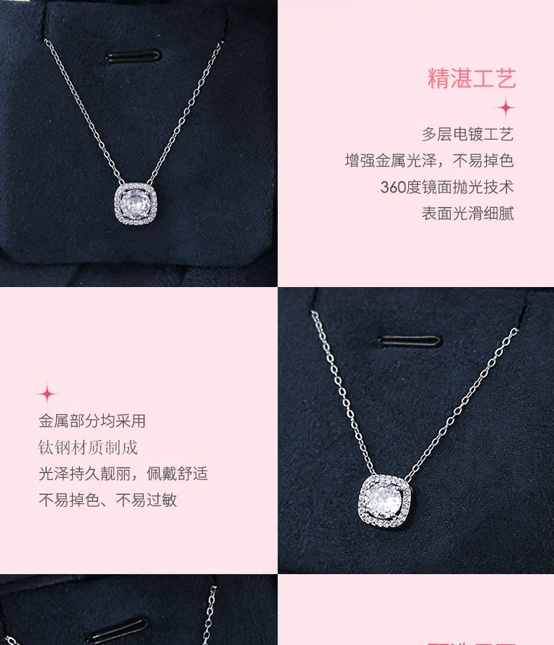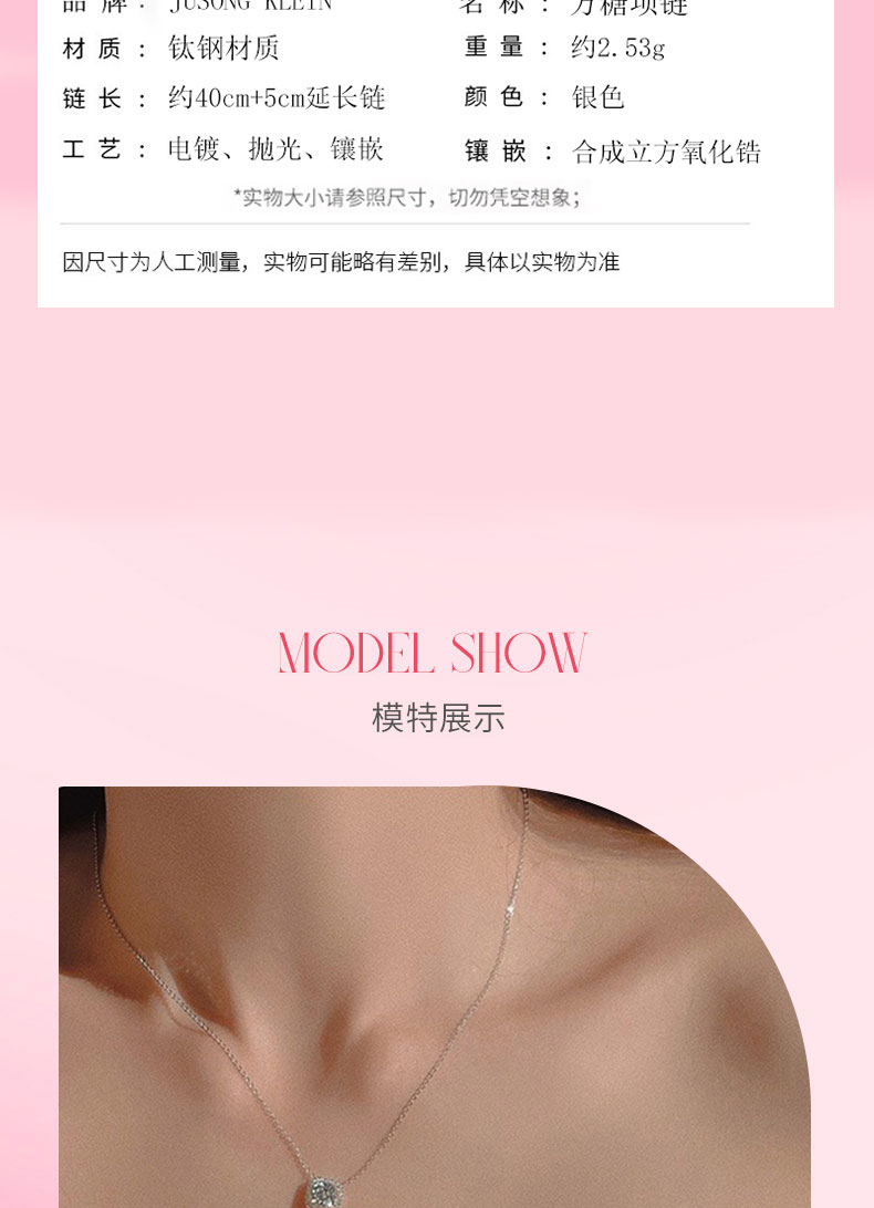 Jusong klein 钛钢项链 方糖项链女轻奢小众设计感镶嵌锆石锁骨链