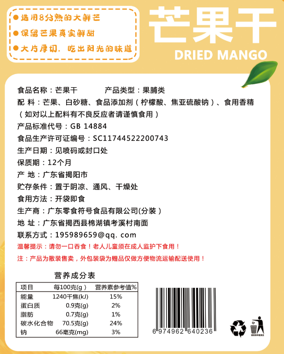 - ¥34.90(家庭装)芒果干,500g*2袋