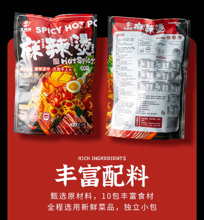 王铭硕牌东北老式黏糊麻辣烫带蔬菜包方便速食 447克*3包