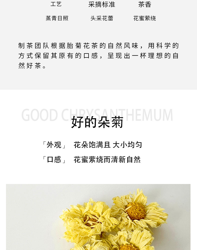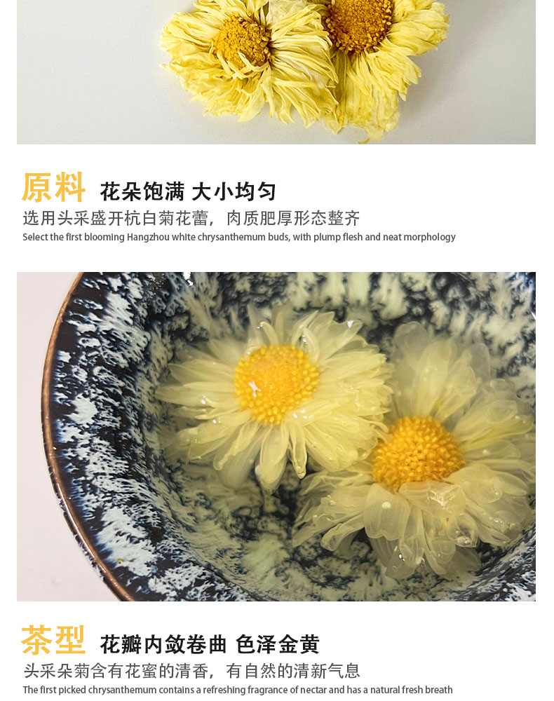 自从收到这款【早菊】新茶无硫正宗桐乡杭白菊后,真的是满心欢喜!打开罐子的那一刻,一股自然的清香扑鼻而来,让人瞬间仿佛置身于春日的花海之中。这120g的分量,对于日常泡饮来说,足足有余,性价比相当高。 首先,必须要提的是它的原产地优势——桐乡,这里出产的杭白菊一直以品质上乘著称。这款茶确实不负其名,每一朵胎菊都饱满完整,色泽金黄,干燥度恰到好处,没有任何硫磺熏过的痕迹,保留了菊花最本真的味道与营养。 泡上一杯,茶汤清澈透亮,淡淡的黄色中透着菊花的清雅,入口甘醇,回味无穷。春天里,这样一杯茶不仅能提神醒脑,还能有效帮助去火,对于经常对着电脑工作或是容易上火体质的我来说,简直是日常必备的小确幸。 而且,包装设计简洁大方,密封性也很好,保证了茶叶的新鲜度,每次取用都非常方便。29.8元的价格,能买到这样品质的花茶,真心觉得物超所值! 总之,这次购物体验非常满意,已经推荐给周围的朋友了。如果你也是爱茶之人,不妨一试,相信你也会爱上这份来自大自然的清新与雅致!
