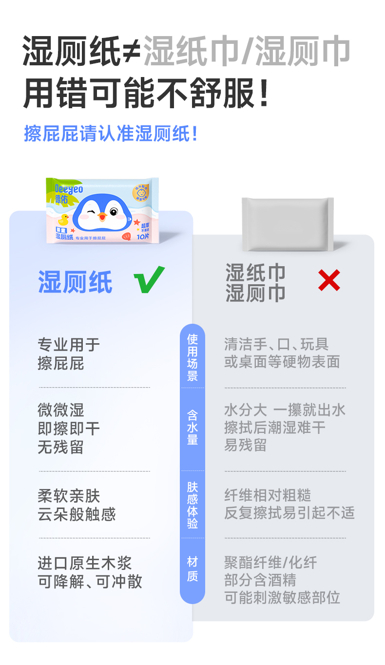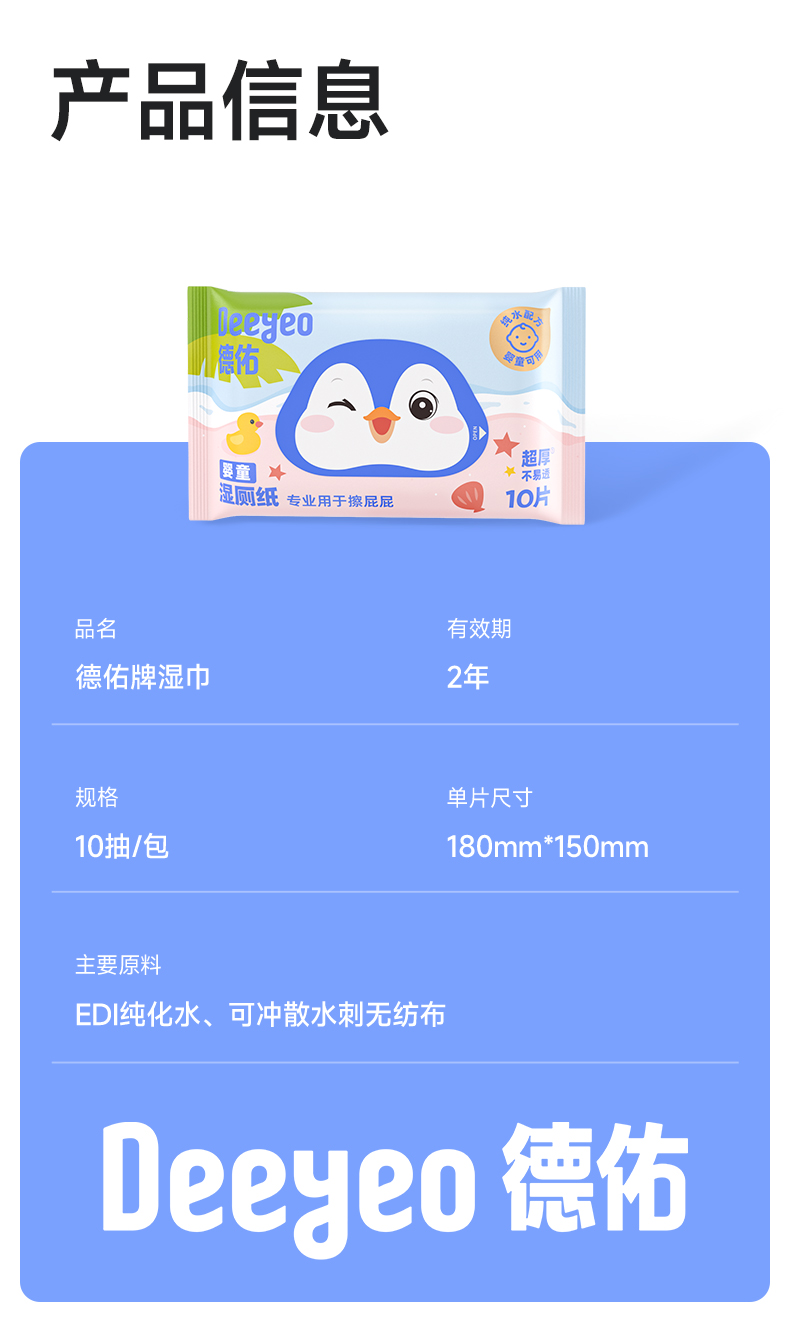 德佑湿厕纸纯水婴儿可冲散便携装10抽湿巾湿厕巾学生专用卫生A
