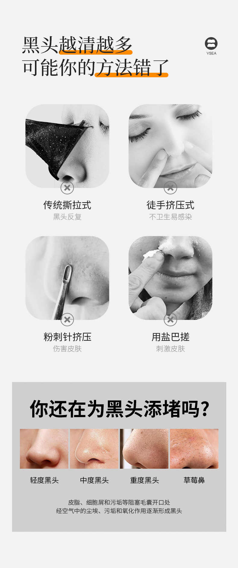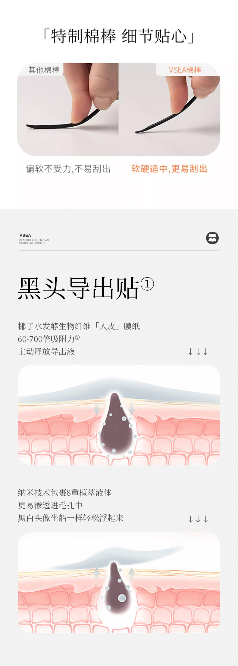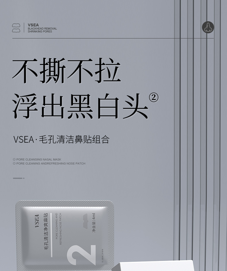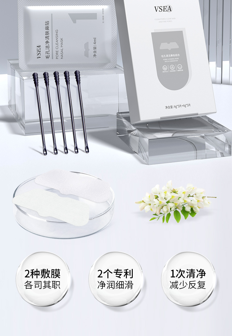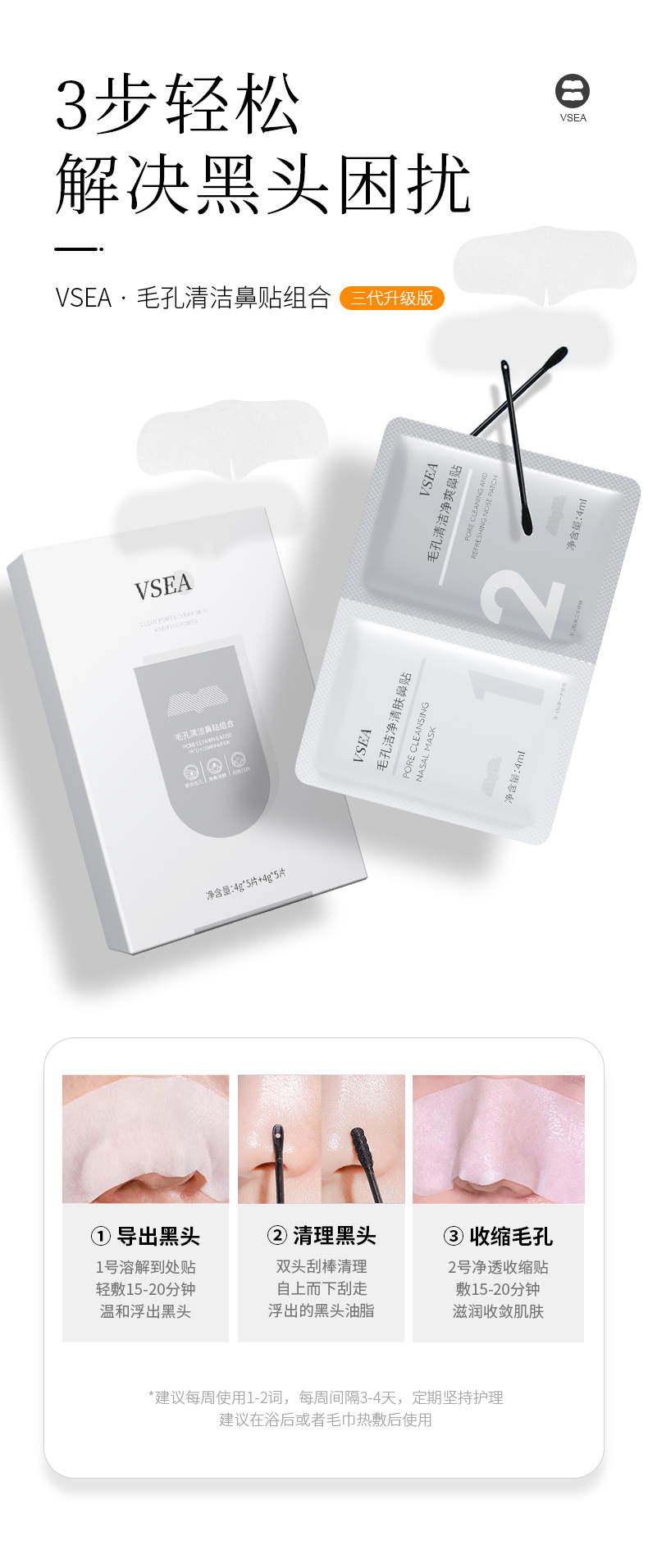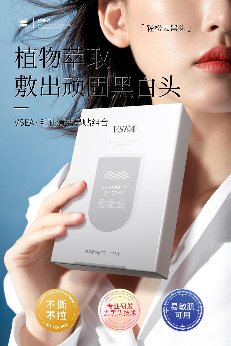 【三件套】9.9/2盒 去黑头粉刺闭口收缩毛孔鼻贴套装VSEA