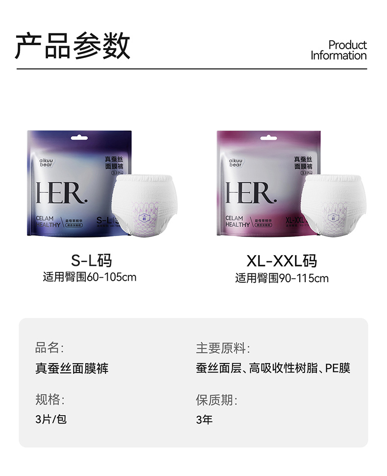 - ¥29.90 真蚕丝面膜裤S-L码【建议80-135斤】3片*10包