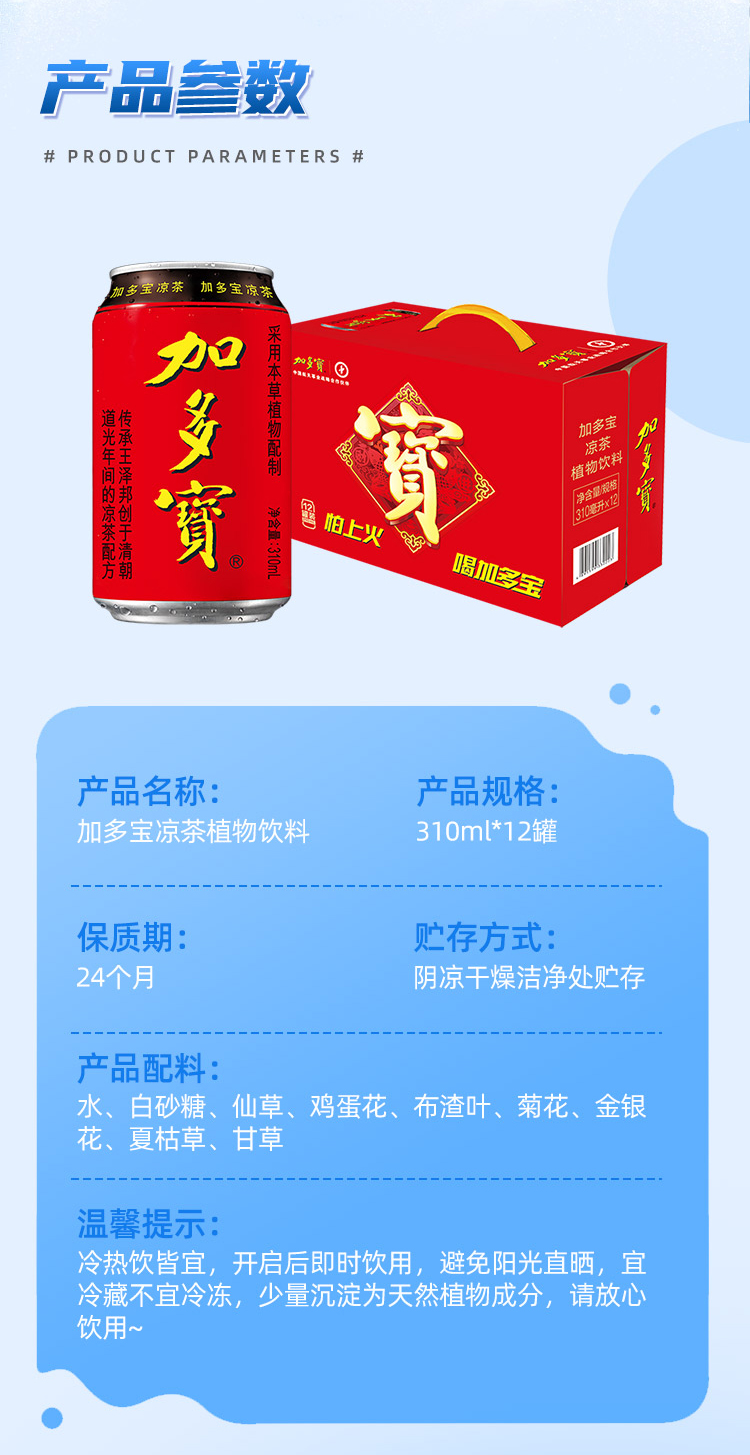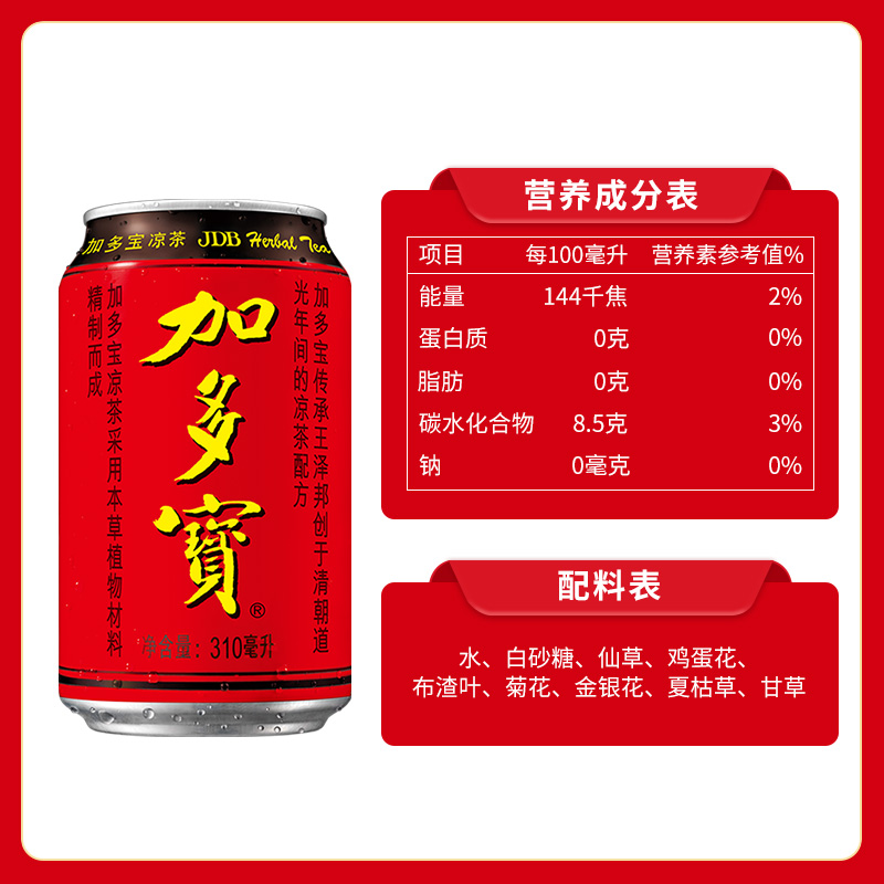 JDB/加多宝凉茶植物饮料310ml*12罐 清凉一夏 喝加多宝凉茶