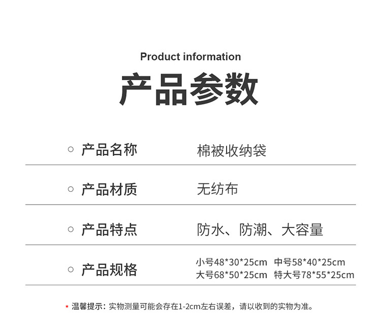 - ¥7.10【彩带加厚无纺布】藏青色-双线加固+破损包赔,78*55*25CM特大号
