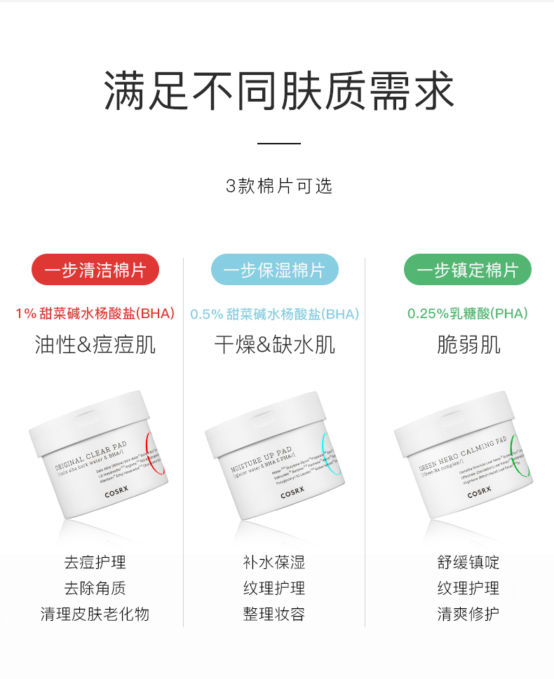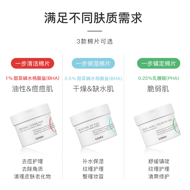 COSRX水杨酸1%棉片70片二次清洁祛痘黑头去角质湿敷
