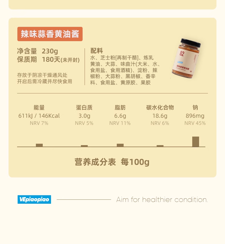- ¥34.00 辣味蒜香黄油酱230g*1瓶