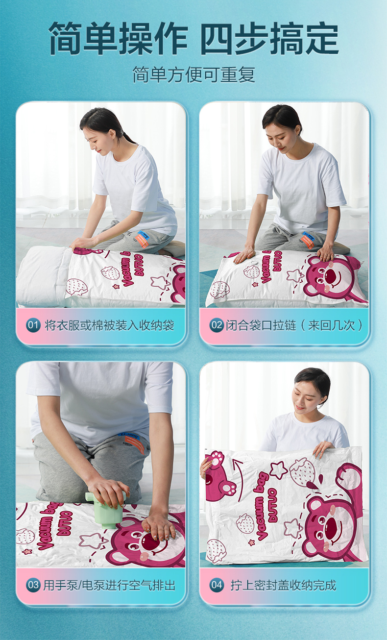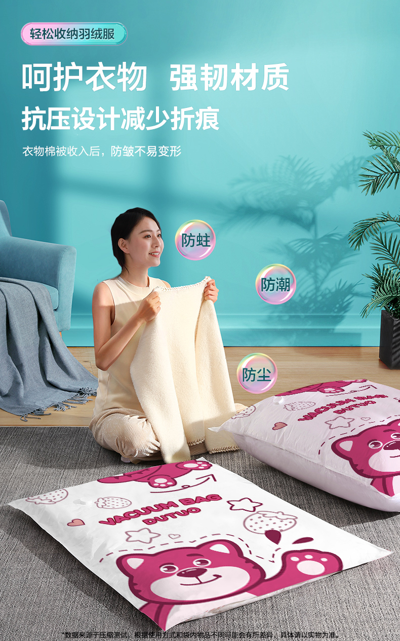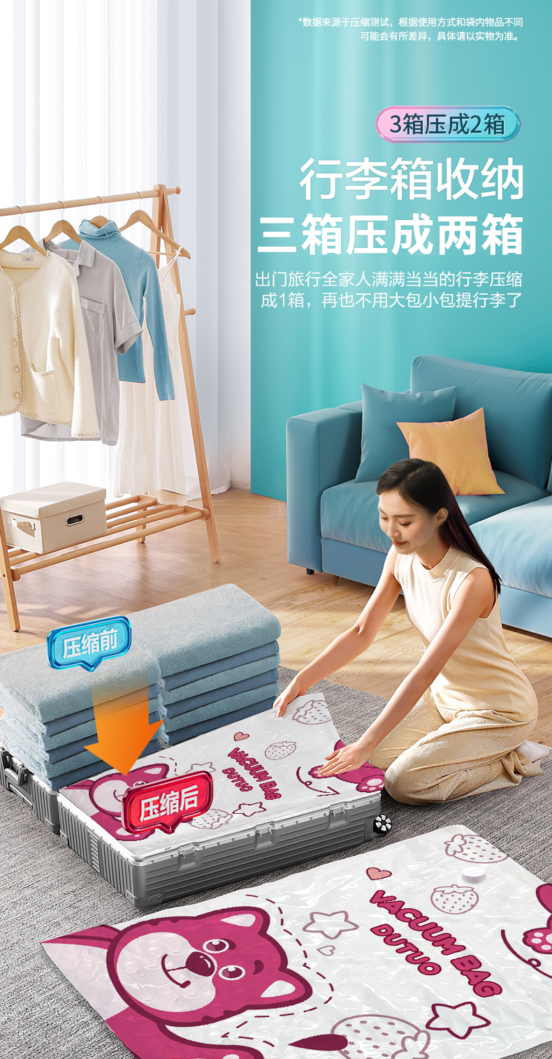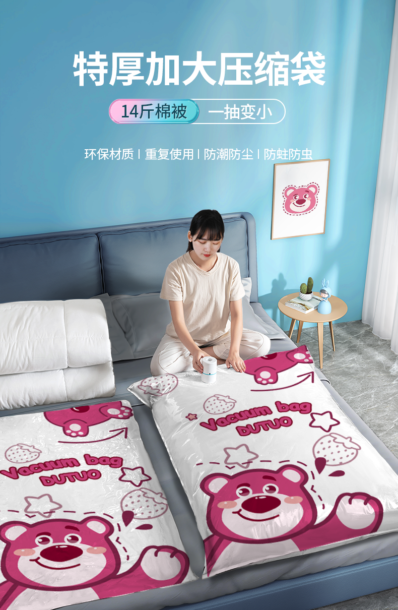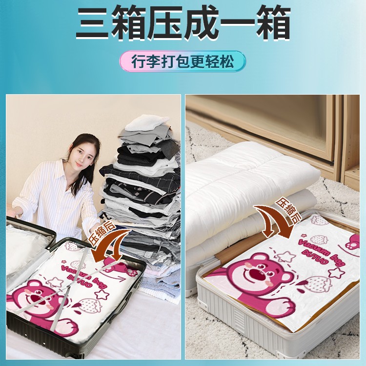 爆款最高机制草莓熊真空收纳袋:放假行李打包+搬家+换季收纳神器,20单投100测试,数据好会追投