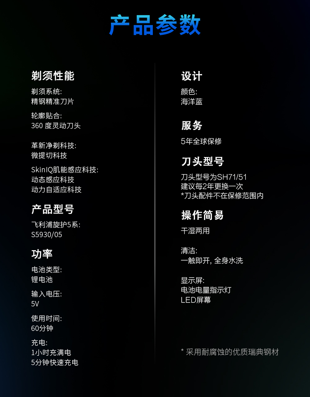 【爆款推荐】飞利浦电动刮胡剃须刀男士防水刮胡刀S5930