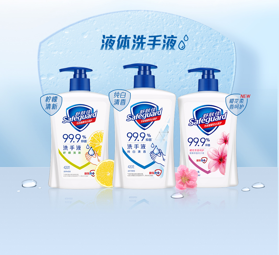 舒肤佳经典洗手液420g*3(纯白x2+柠檬x1)+纯白清香补充装200g*2