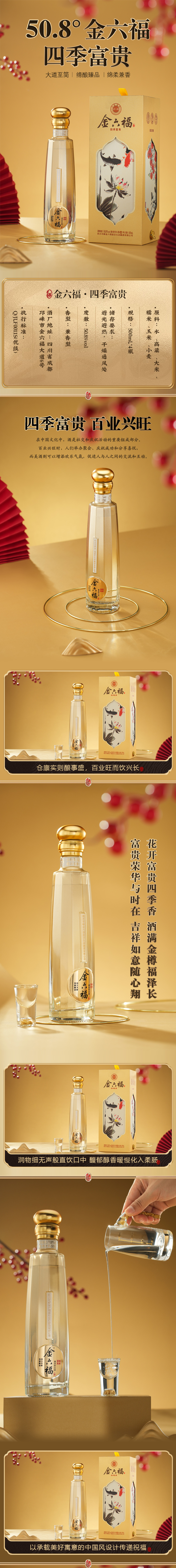 【需要绑定达人专属价】1. 这款金六福四季富贵的酒真的很不错,口感很好,50.8度的酒精度也很够味,感觉每一口都是纯粮固态酿造的精华。