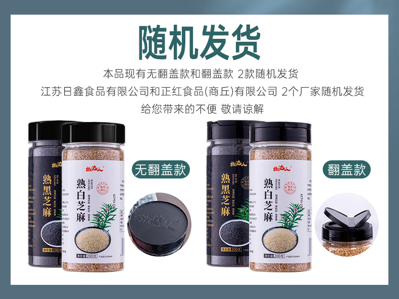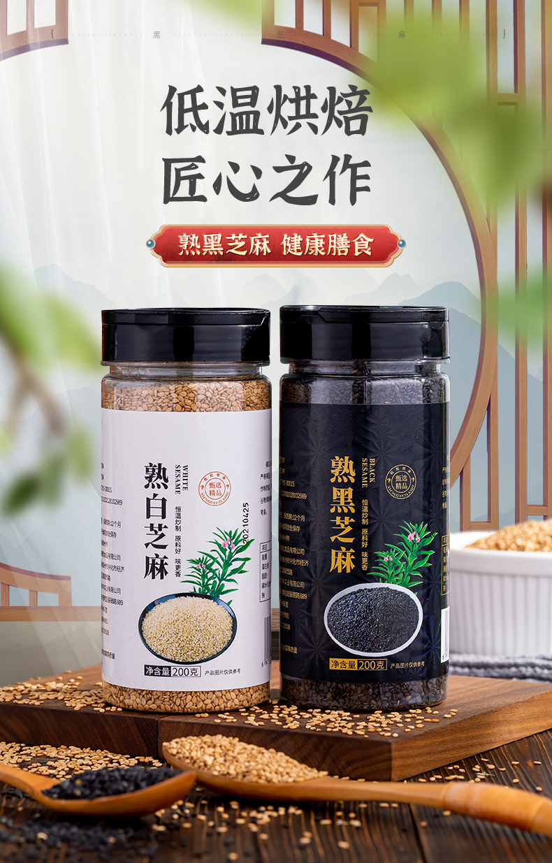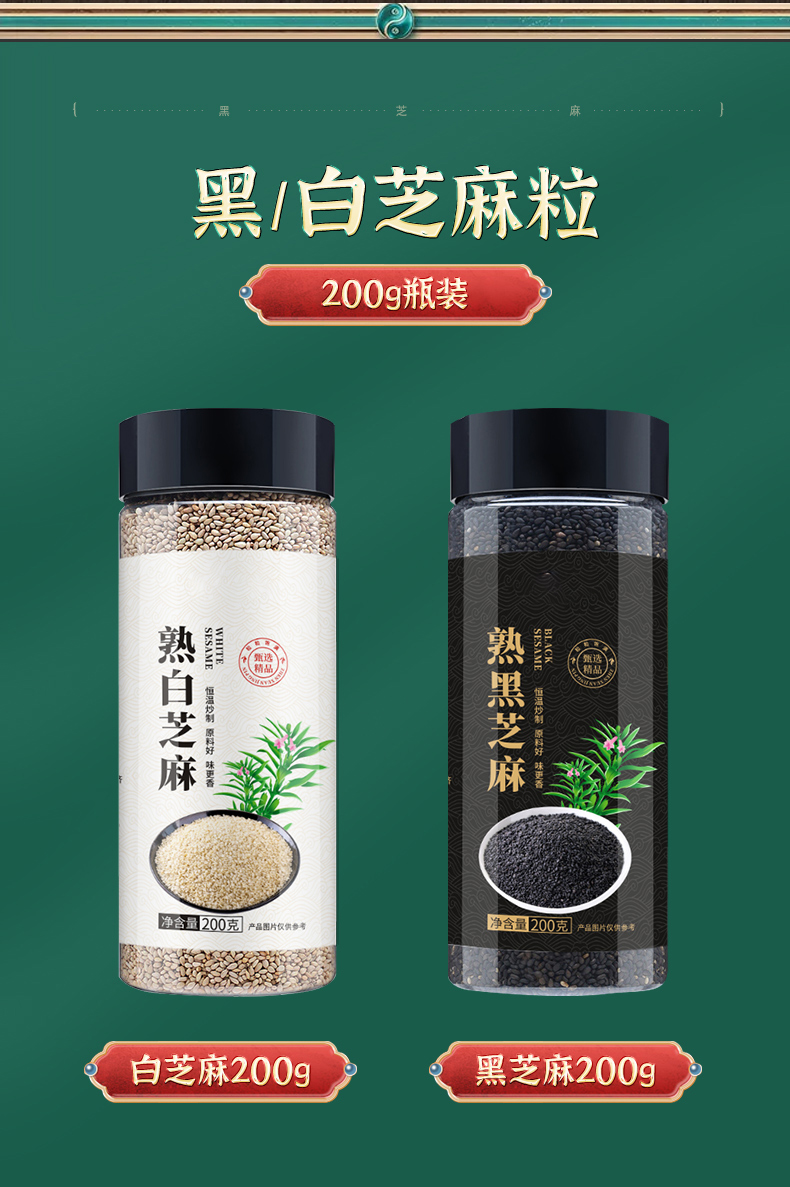 - ¥29.80 白芝麻200g*2瓶+黑芝麻200g*2瓶
