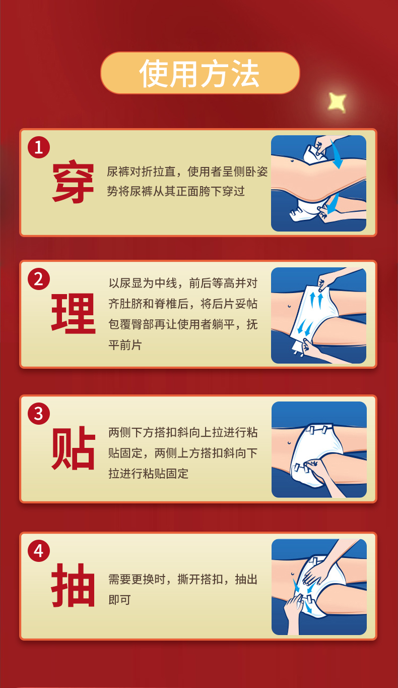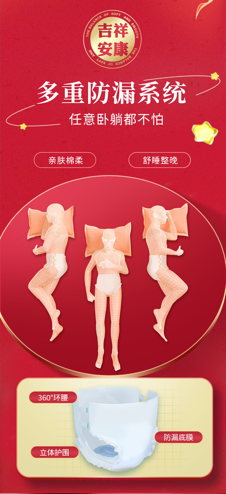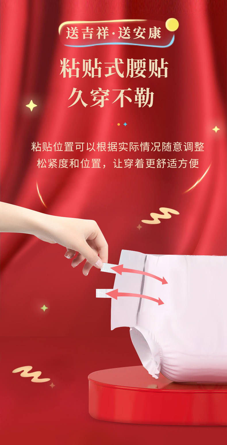 该商品是一款适合老年人的纸尿裤,适合需要长时间使用纸尿裤的人群。商品规格为吉祥福气·贺年的M码,适合体型中等或偏瘦的老年人使用。该商品价格实惠,为36.99元,且商品附加价值高,采用鸿福祥品牌,具有高端、优质的特点