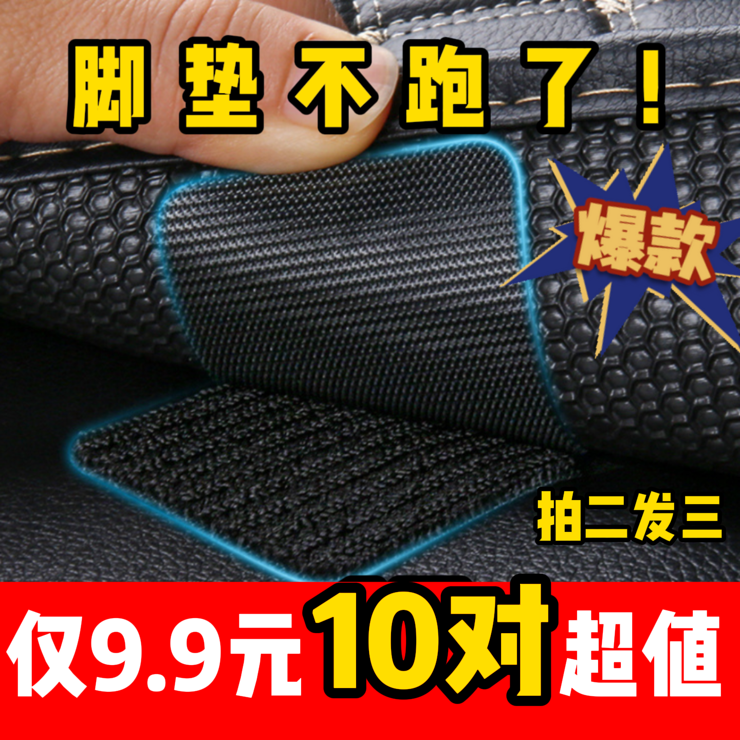 【9.9元10对20片】汽车脚垫固定贴高粘度魔术贴脚垫高强度固定