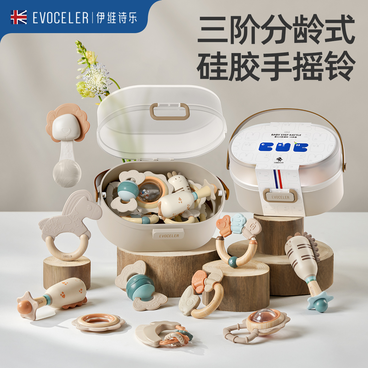 EVOCELER婴儿玩具礼盒新生儿礼物初生宝宝手摇铃早教啃咬益智牙胶