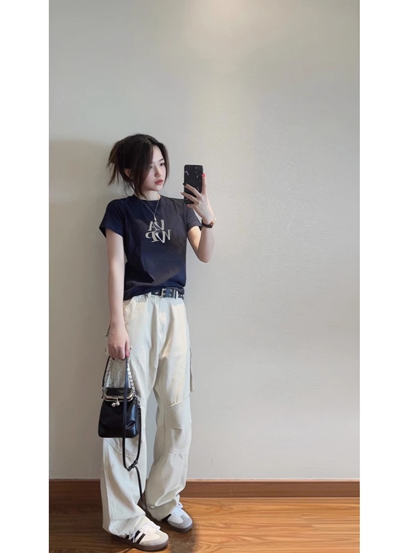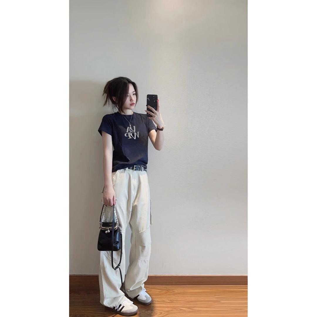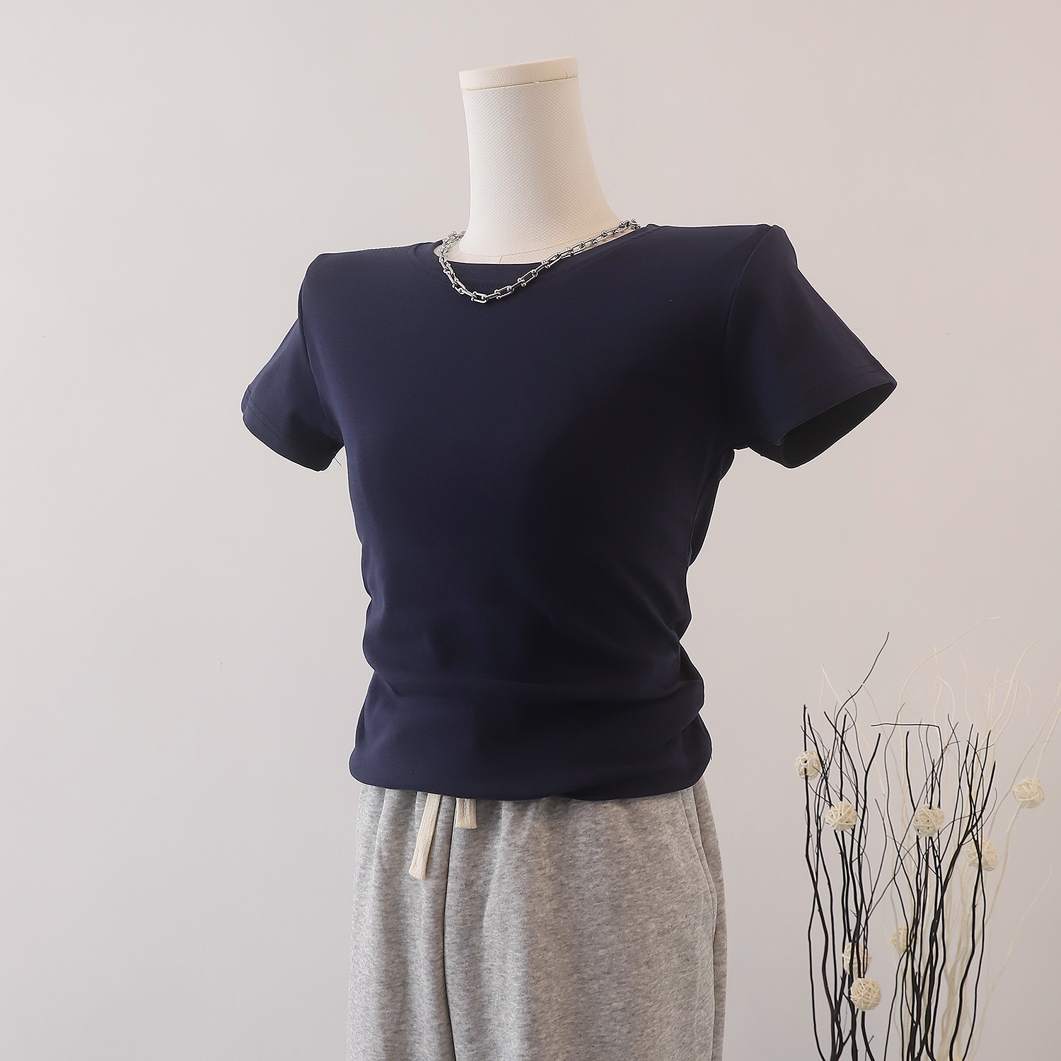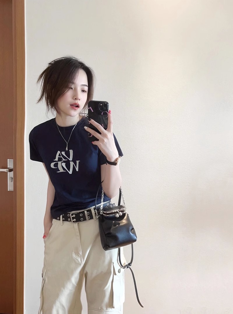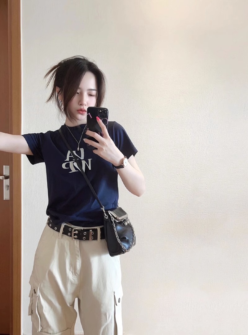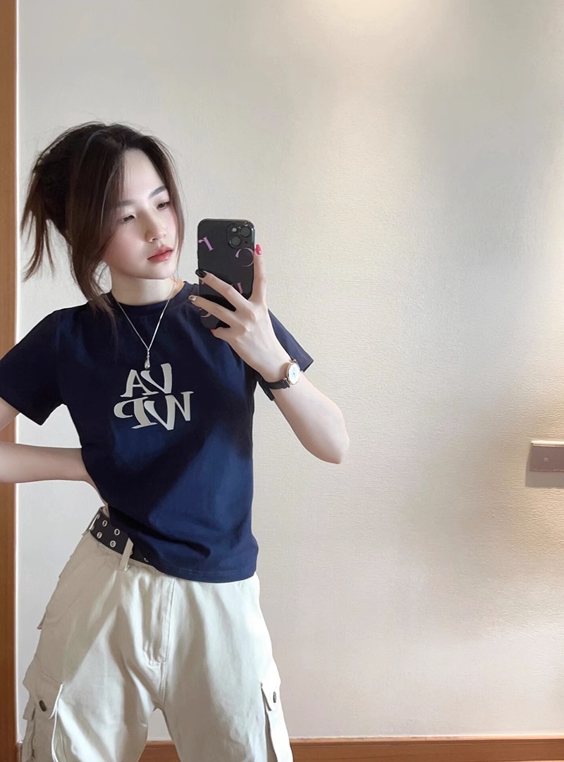该商品是一款短袖T恤,适合各种年龄段的女性。其款式新颖,适合夏季穿着,适合各种体型,特别是微胖的女性。藏青色和白色两种颜色可选,颜色低调又不失时尚感。