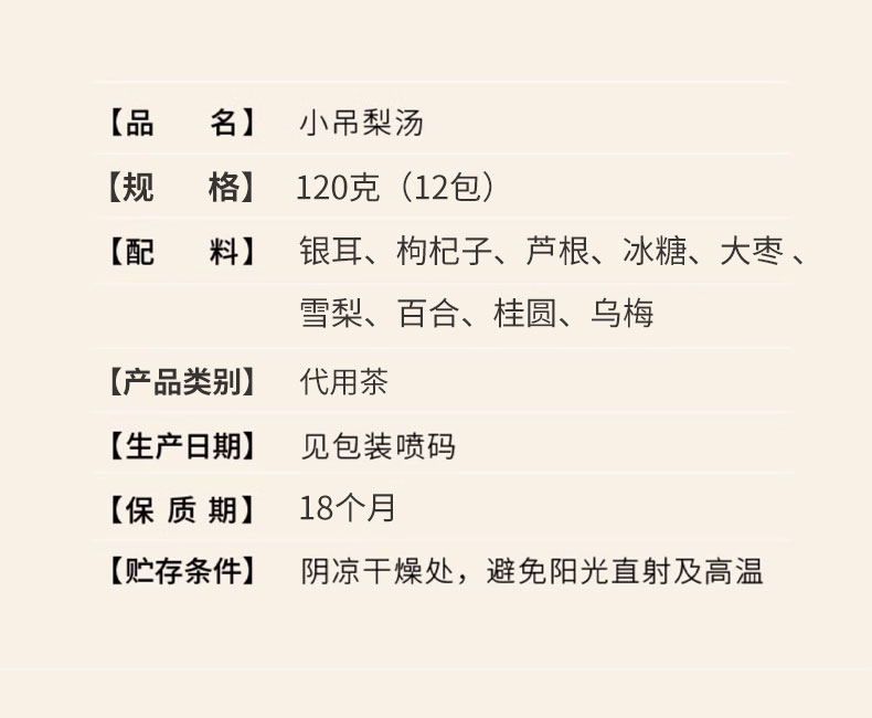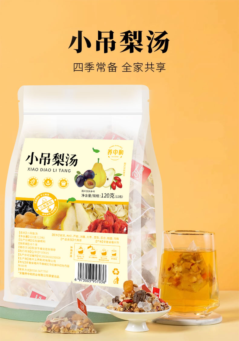 总的来说,这款小吊梨汤组合是一款非常适合秋冬季节饮用的热饮茶包,口感很好,价格也很实惠,值得购买。不过需要注意的是可能会有一些冰块需要自己融化一下。
