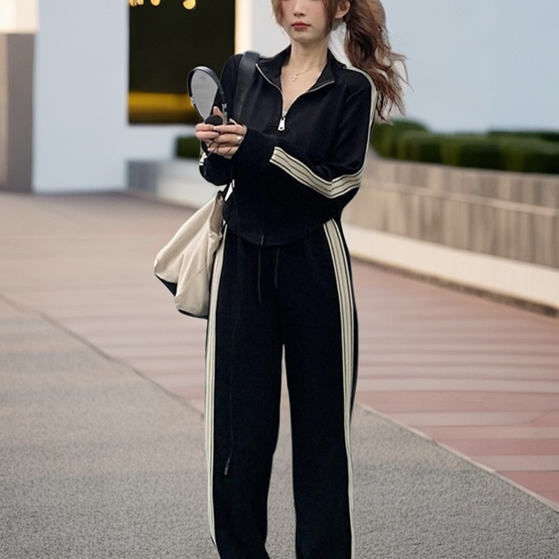 该商品是一款小个子女生春秋时尚洋派休闲宽松运动服套装女春秋,适合小个子女生在春秋季节进行运动和日常穿着。