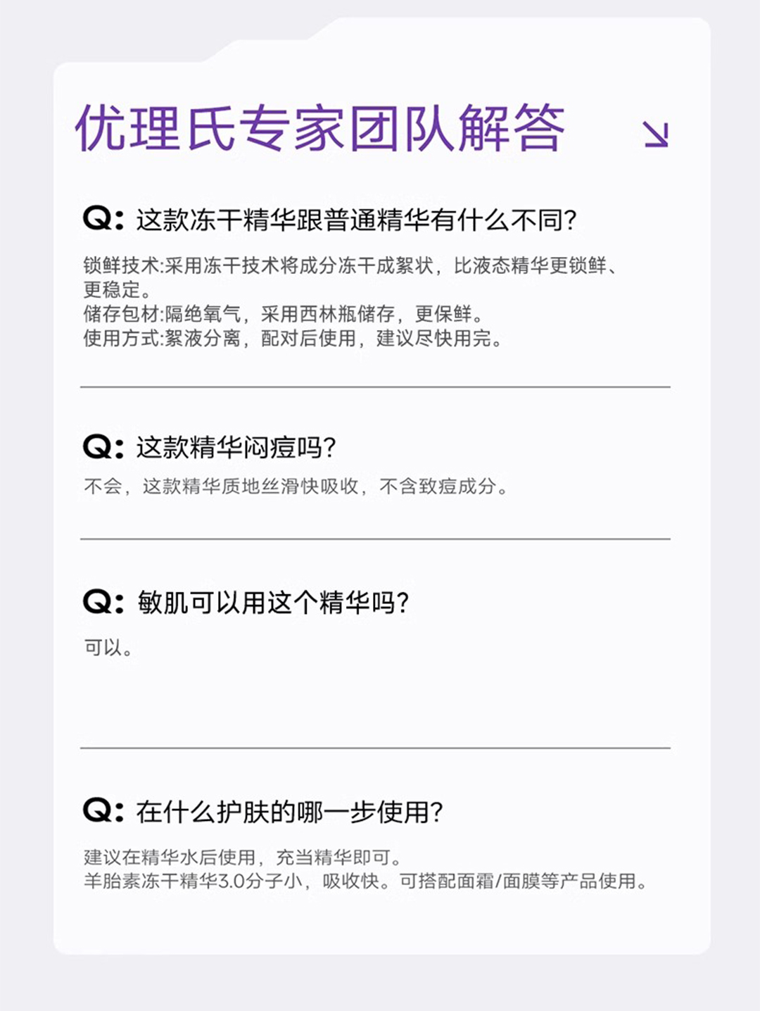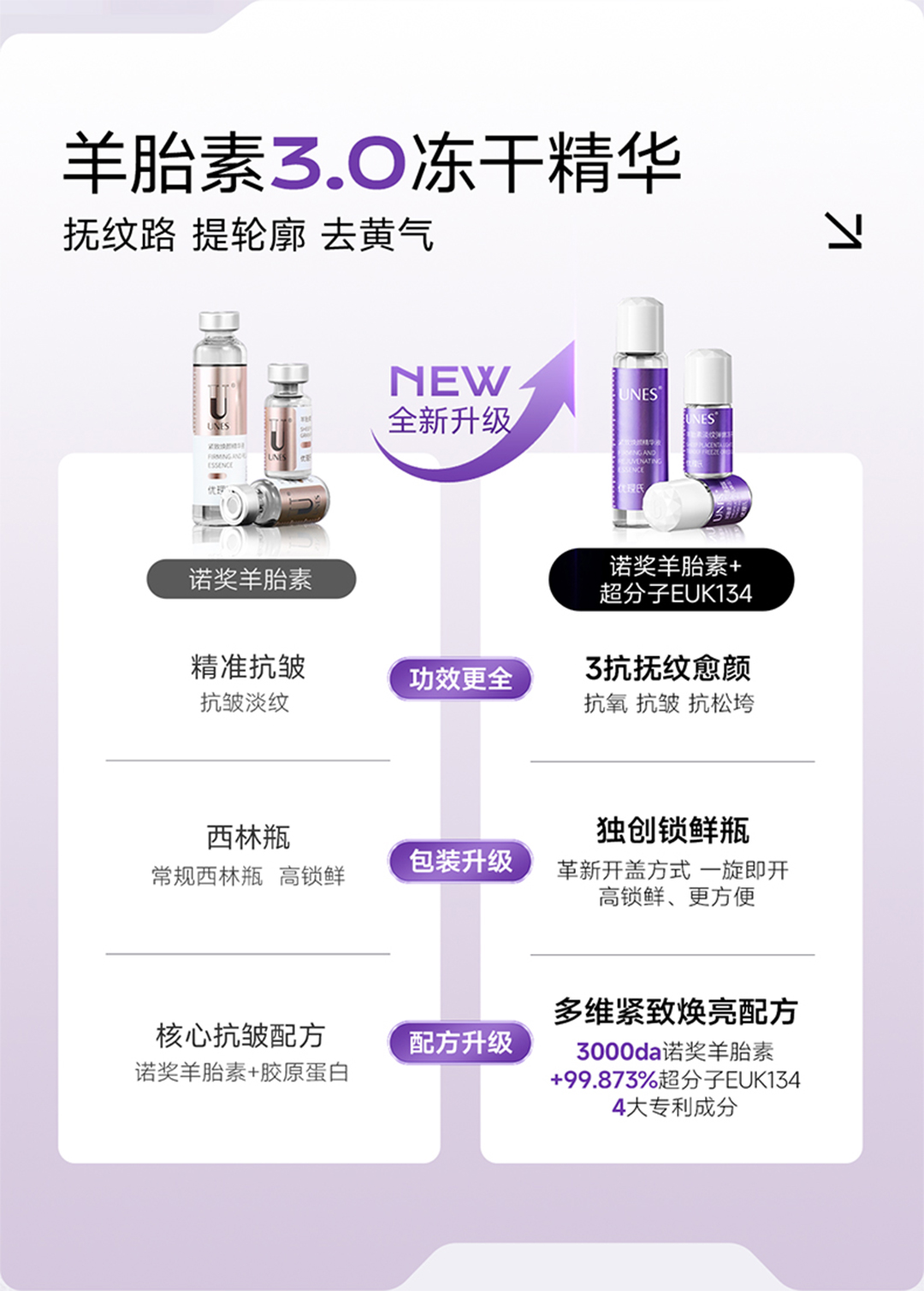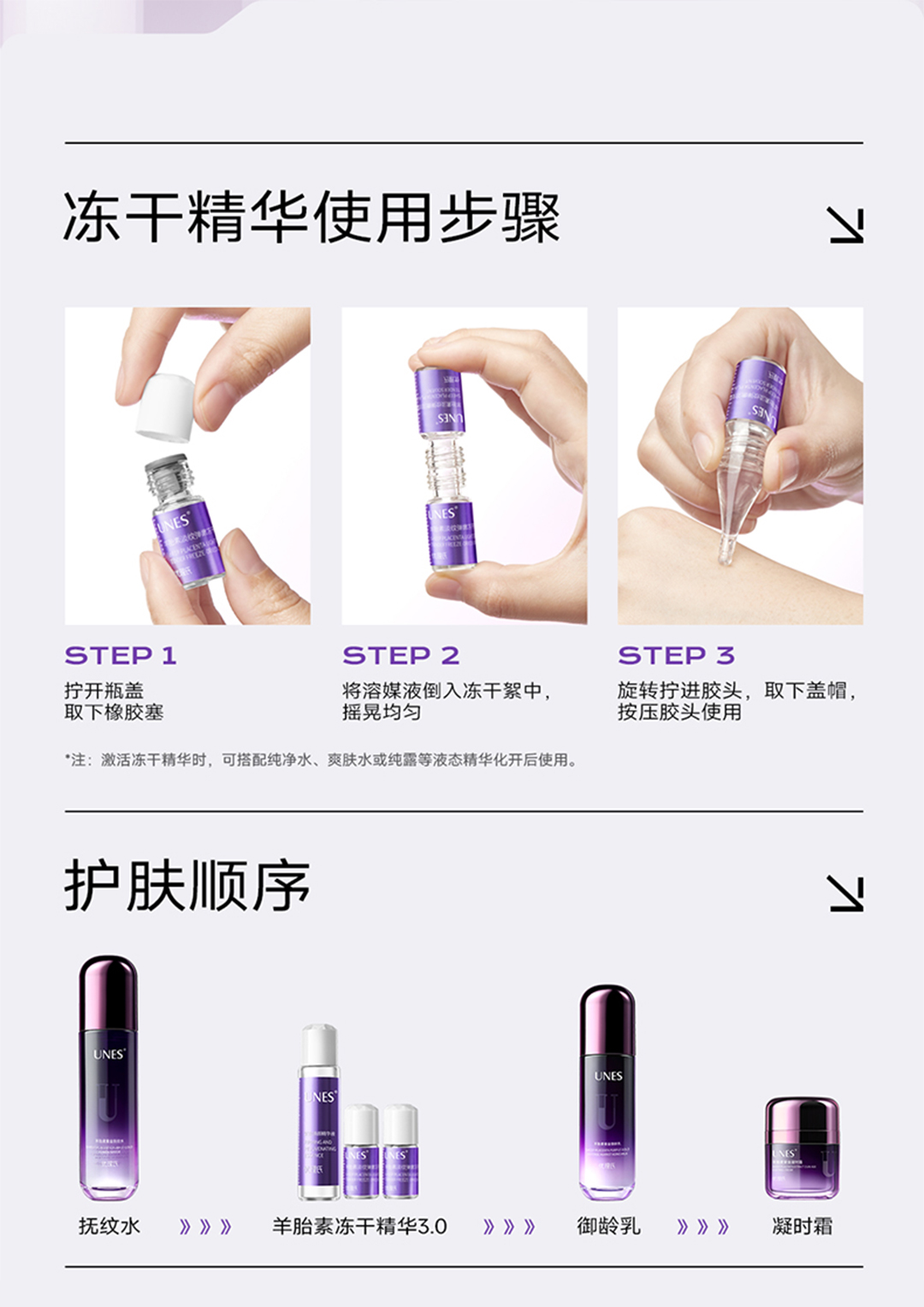 优理氏羊胎素3.0套盒熬夜修护吸收淡纹抗皱紧致抗老冻干絮精华D