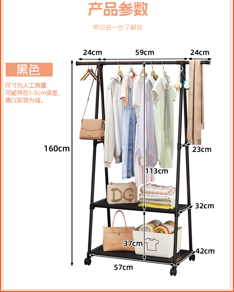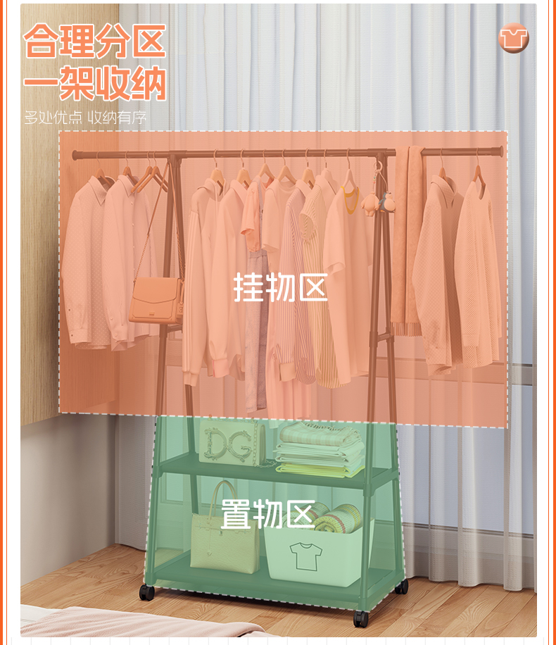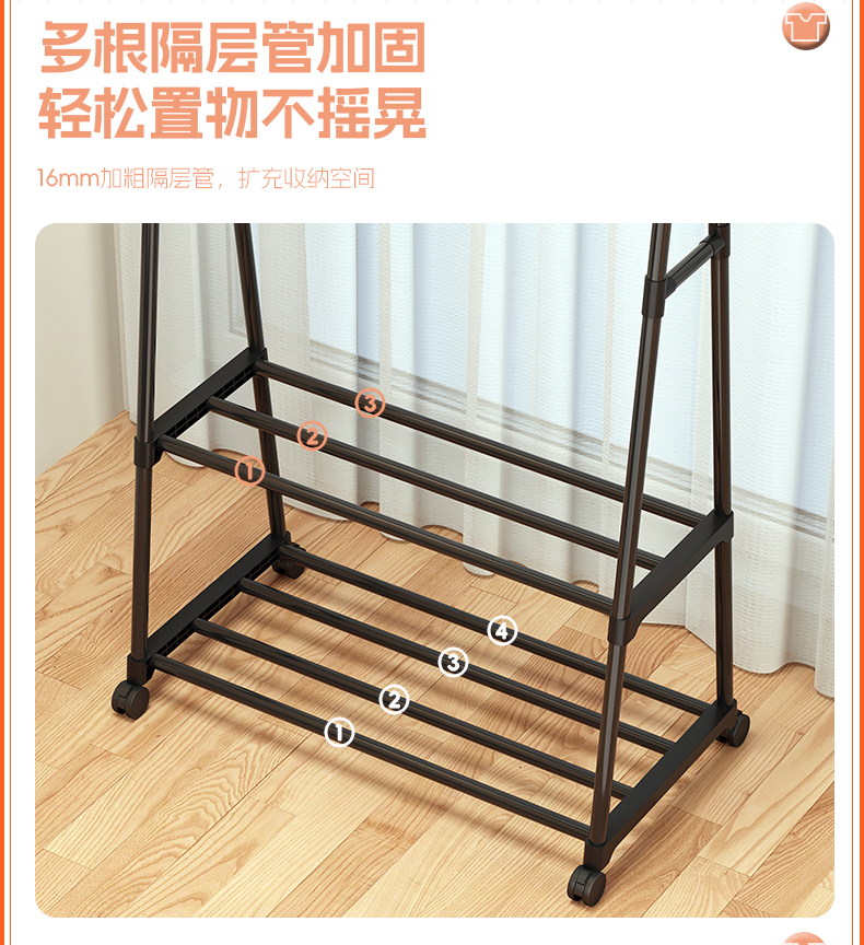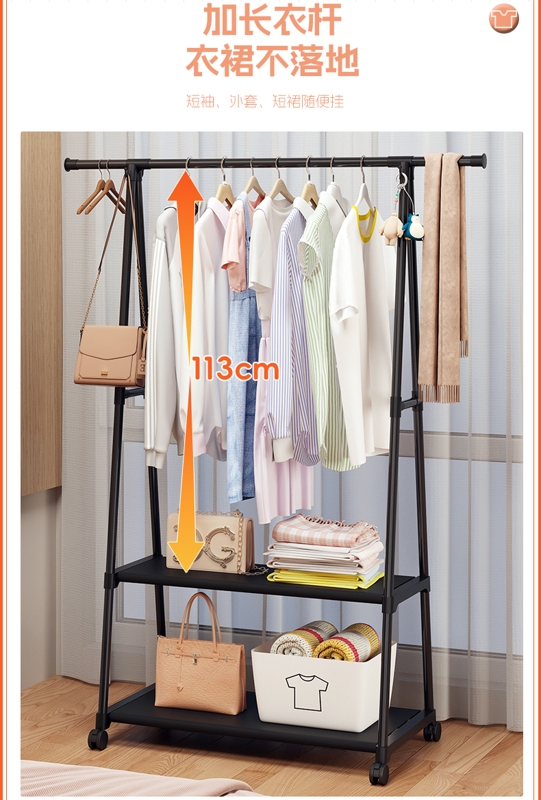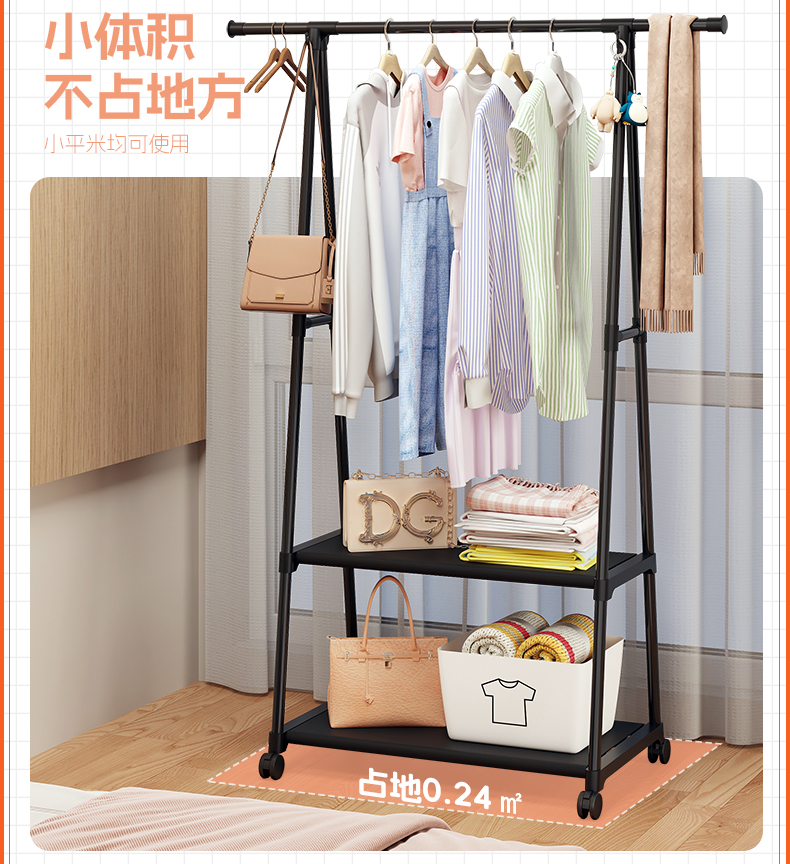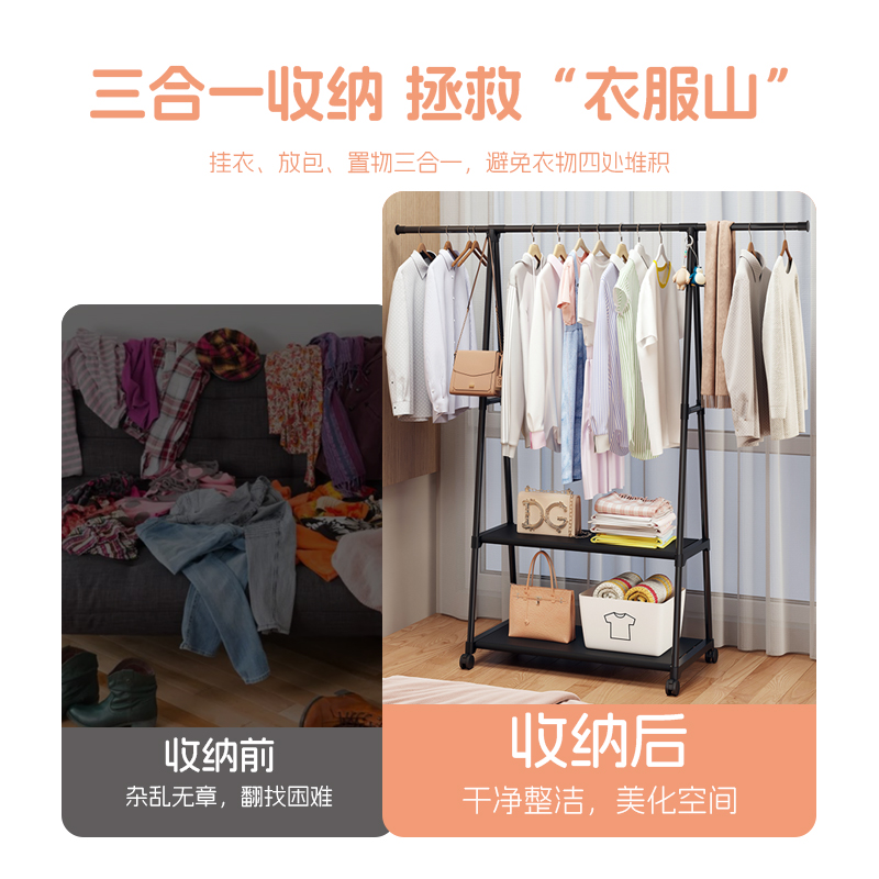宅所多功能挂衣架卧室衣帽架一体加厚落地耐用挂衣杆房间置物架