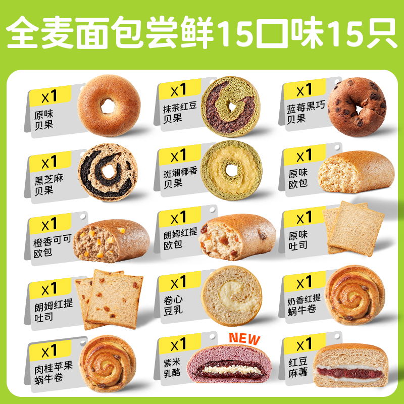 - ¥59.90 【全麦面包全家福】14口味24只/箱