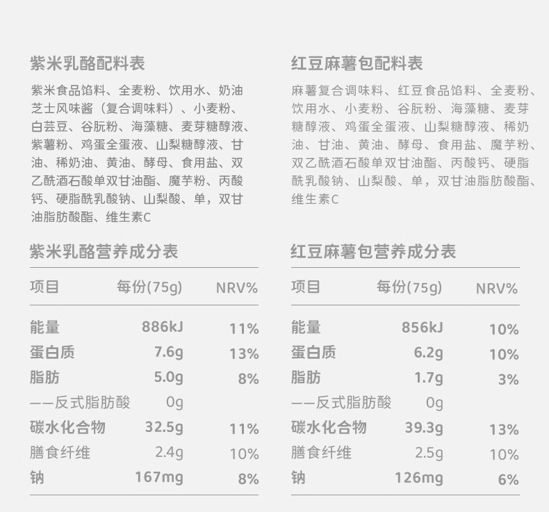 - ¥35.90 夹心馅料面包4口味8只/箱-红豆麻薯欧包*2+紫米乳酪欧包*2+黑芝麻贝果*2+斑斓椰香贝果*2